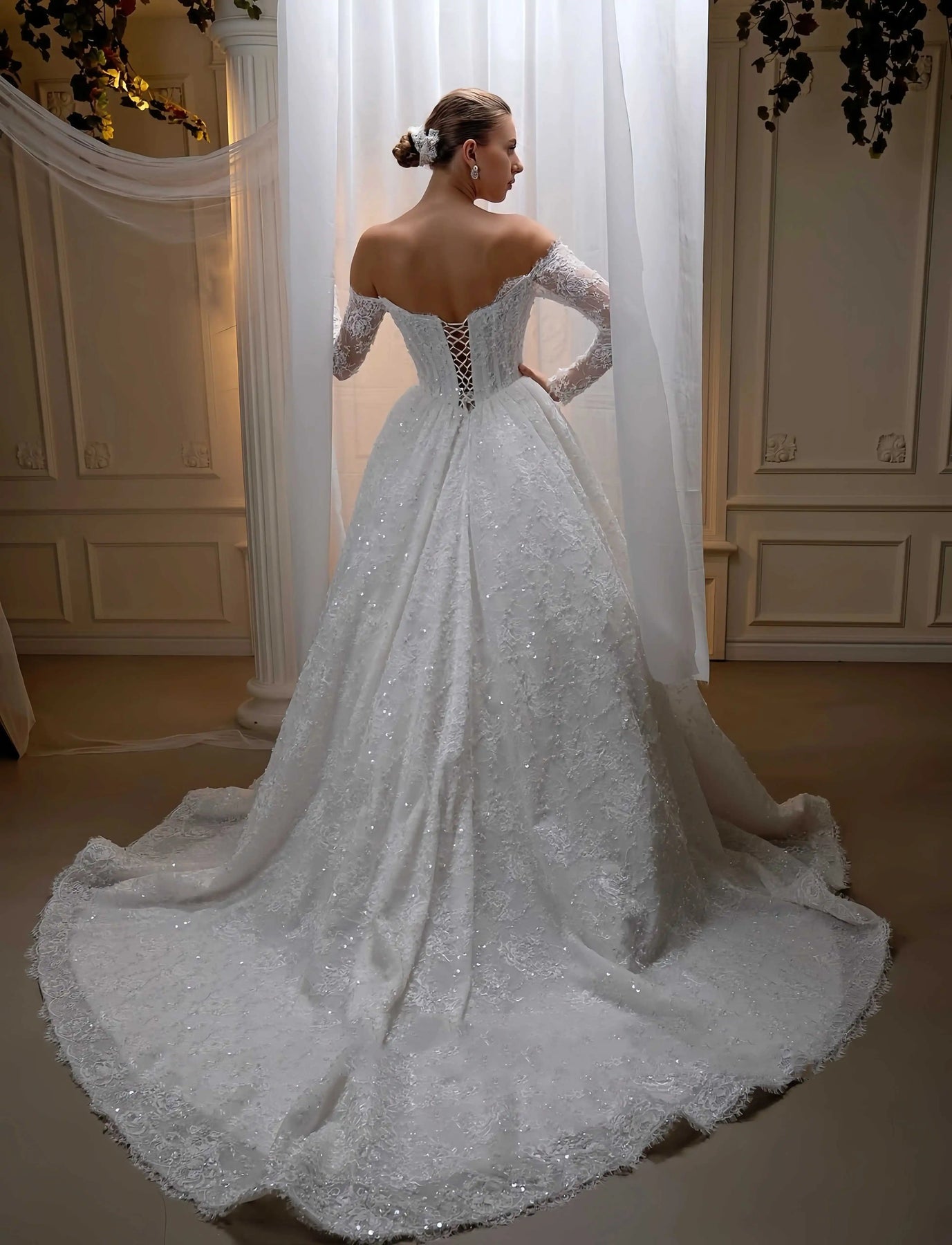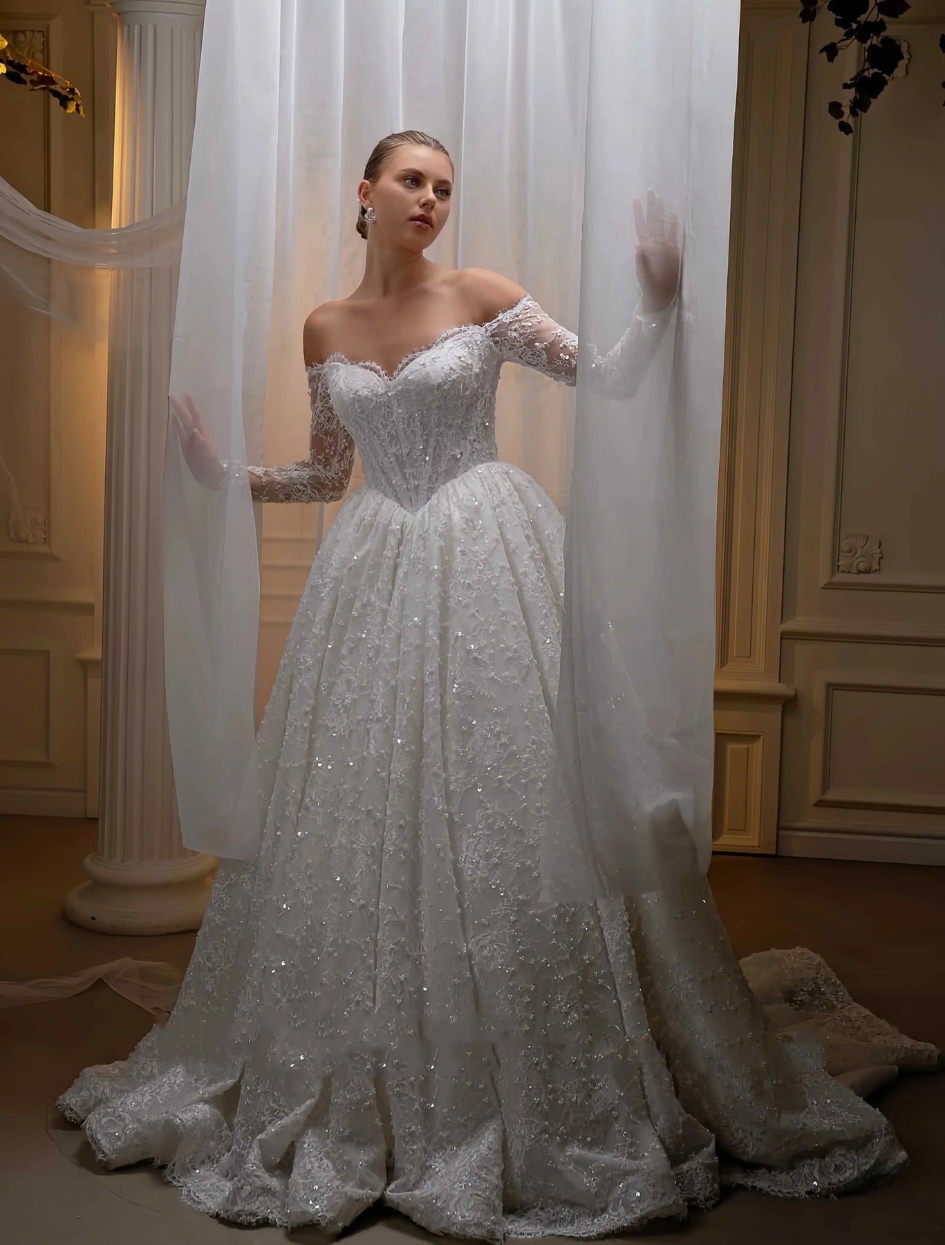 Elevate your formal wardrobe with this exquisite off-shoulder lace ball gown. Crafted from delicate lace detailing, the sweetheart neckline and off-shoulder design create a romantic, sophisticated silhouette that flatters the figure. The voluminous skirt provides dramatic movement and presence, making it an ideal choice for weddings, galas, and special occasions. The structured bodice ensures comfortable all-day wear, while the timeless design transcends seasonal trends. Perfect for those seeking an elegant statement piece that combines classic femininity with contemporary style.