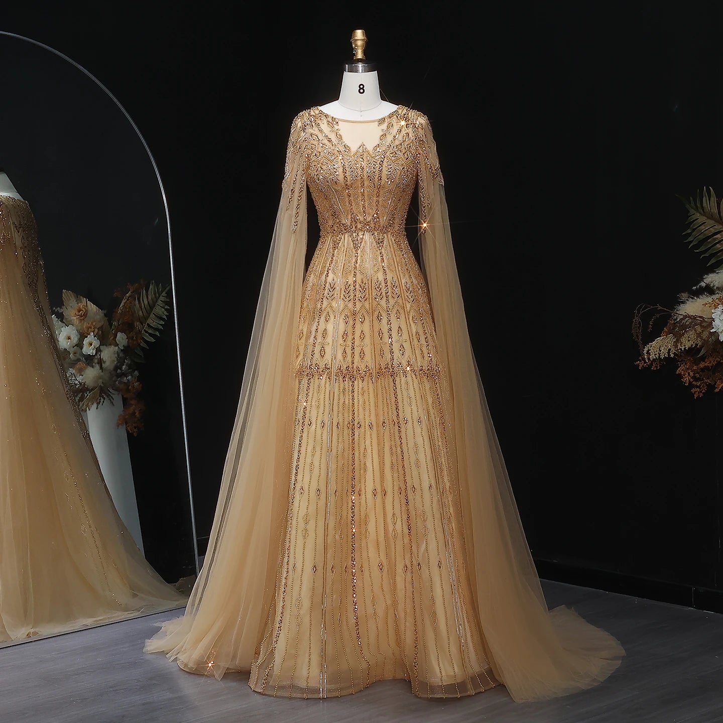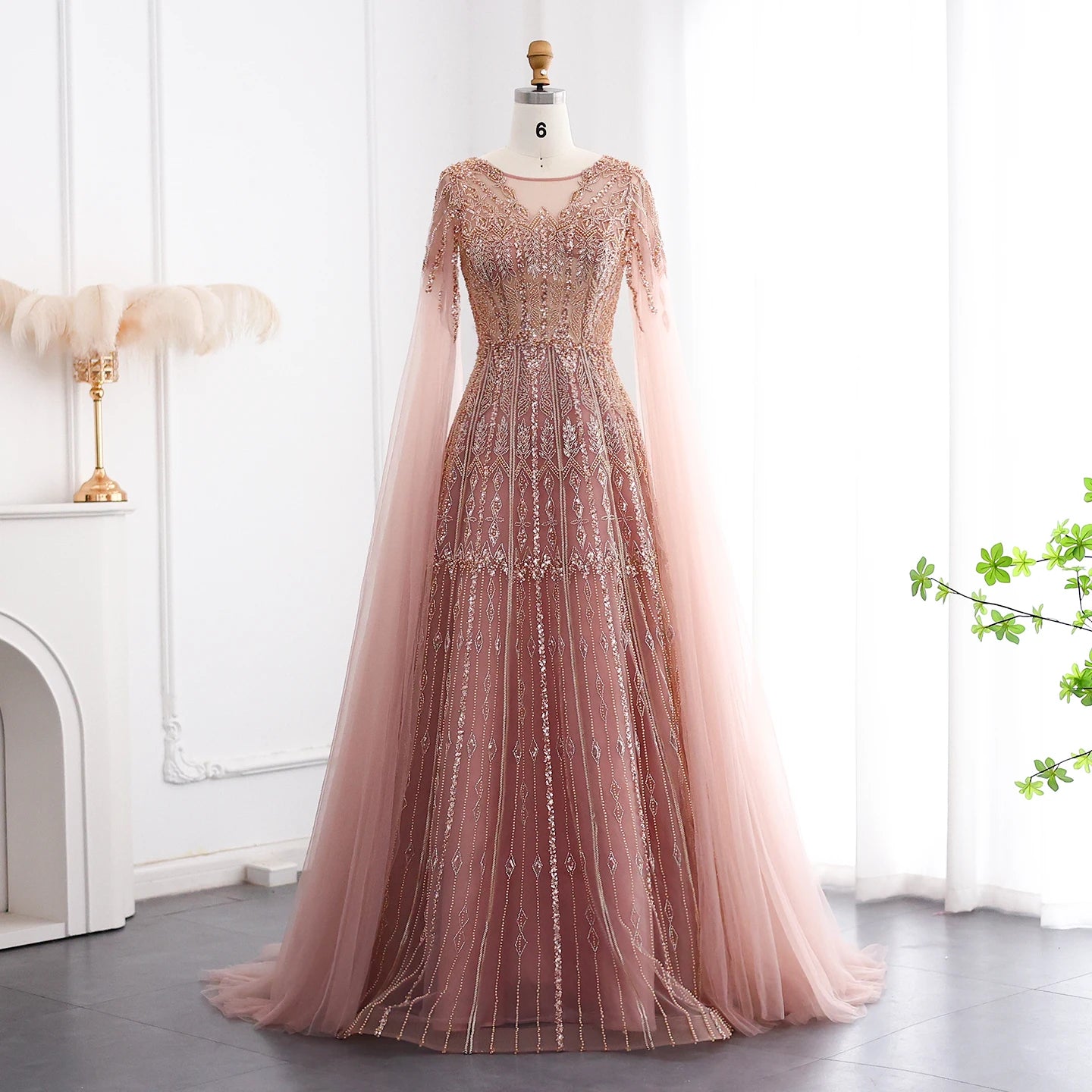 This Luxury Cape Sleeves Women's A-Line Gown combines classic elegance with modern sophistication. The flowing A-line silhouette flatters a variety of body shapes, while the dramatic cape sleeves add a refined, statement-making touch. Crafted with attention to detail, this gown is perfect for formal occasions where effortless style and grace are essential. Its design ensures both comfort and movement, making it an excellent choice for events that require poise and confidence.