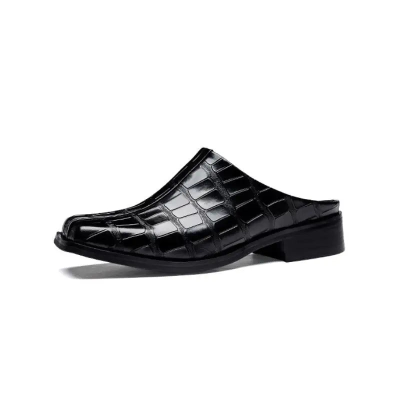 Crafted from premium embossed leather, these men's mules combine sophisticated style with exceptional comfort. The textured finish adds a refined touch, while the slip-on design ensures effortless wear. Ideal for both casual and smart occasions, they offer durability and a polished look that elevates any outfit.