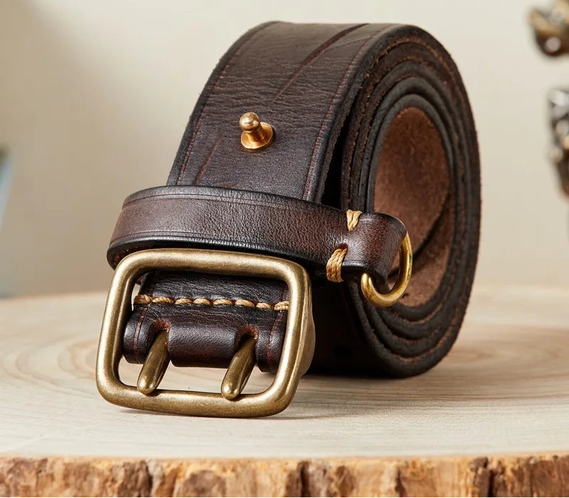 Crafted from premium leather, this men's belt features a distinctive double pin buckle design that combines durability with refined style. Its robust construction ensures long-lasting wear, while the sleek buckle adds a sophisticated touch to both casual and formal outfits. Ideal for those seeking a blend of functionality and elegance in their accessories.