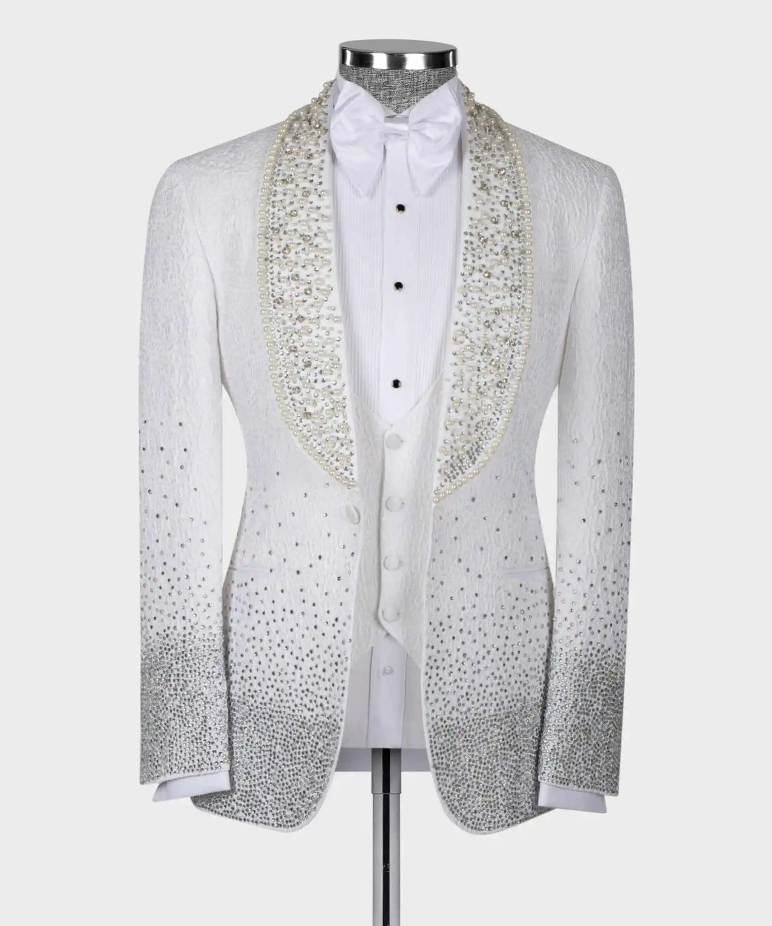 Elevate your formal wardrobe with the Glamorous Satin 3-Piece Men's Pearl Suit. Crafted from lustrous satin fabric, this suit features a tailored jacket, matching waistcoat, and trousers designed for a sharp, sophisticated fit. The subtle pearl sheen adds a refined touch, making it ideal for weddings, galas, or upscale events. Expertly constructed to combine comfort with elegance, this suit ensures you stand out with timeless style and impeccable craftsmanship.