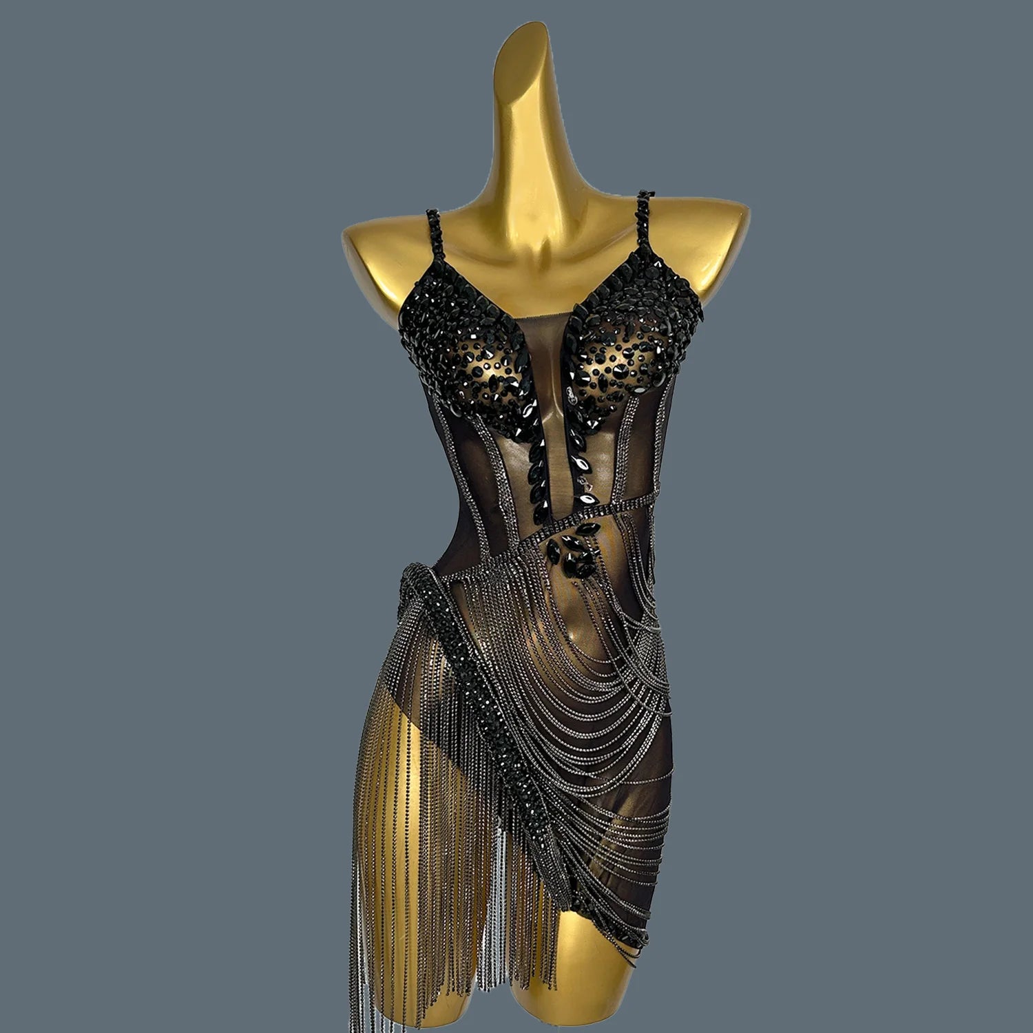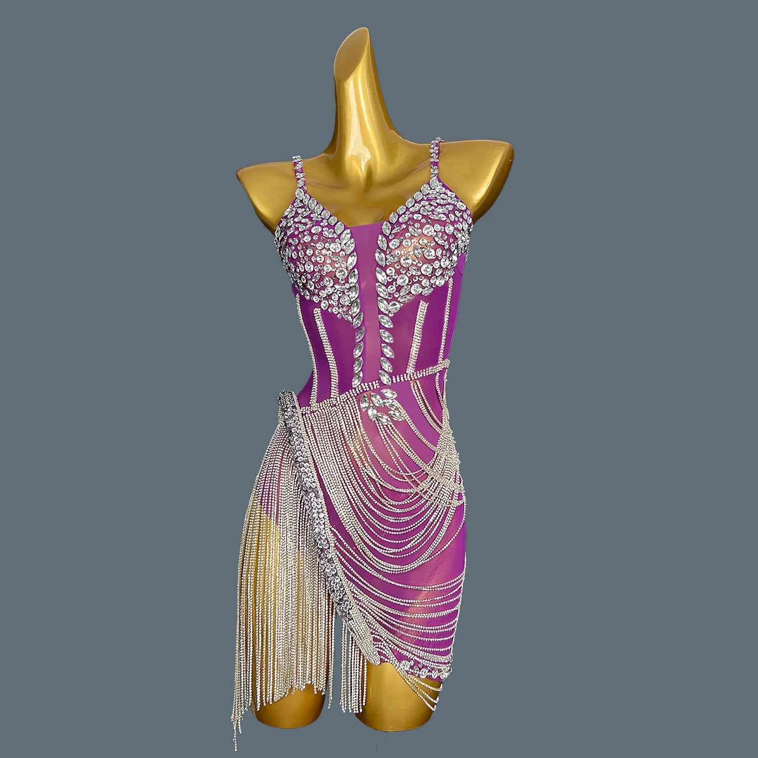 Enhance your party look with our Shiny Crystal Tassel Women's Party Dress. The shimmering crystals and elegant tassels add a touch of glamour to any occasion. Made with high-quality materials, this dress is sure to impress. Elevate your style with this stunning dress.