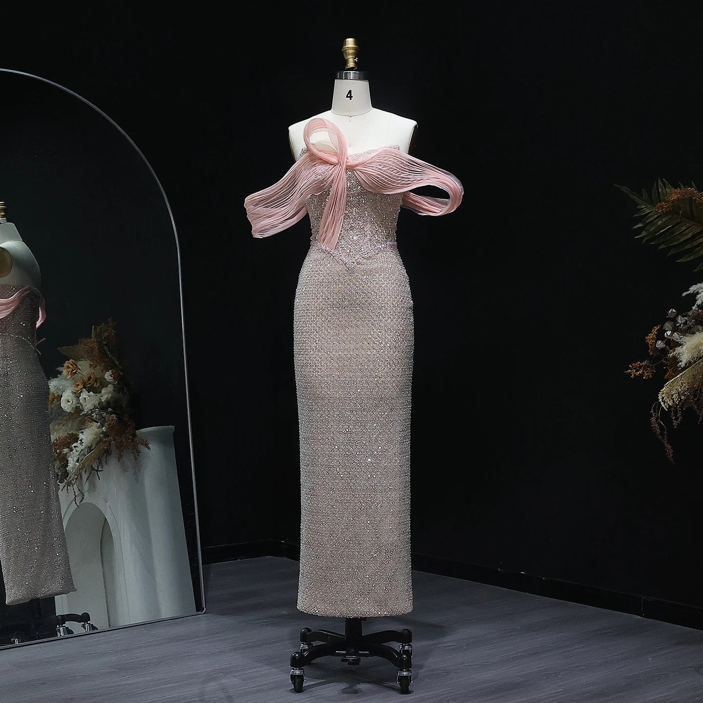 Experience luxury and grace with our Off Shoulder Women's Pink Gown. Featuring an elegant off-shoulder design, this gown exudes sophistication and femininity. Made with premium materials, it offers comfort and beauty in a single piece. Perfect for any special occasion, this gown is a must-have for every fashionable woman's wardrobe.