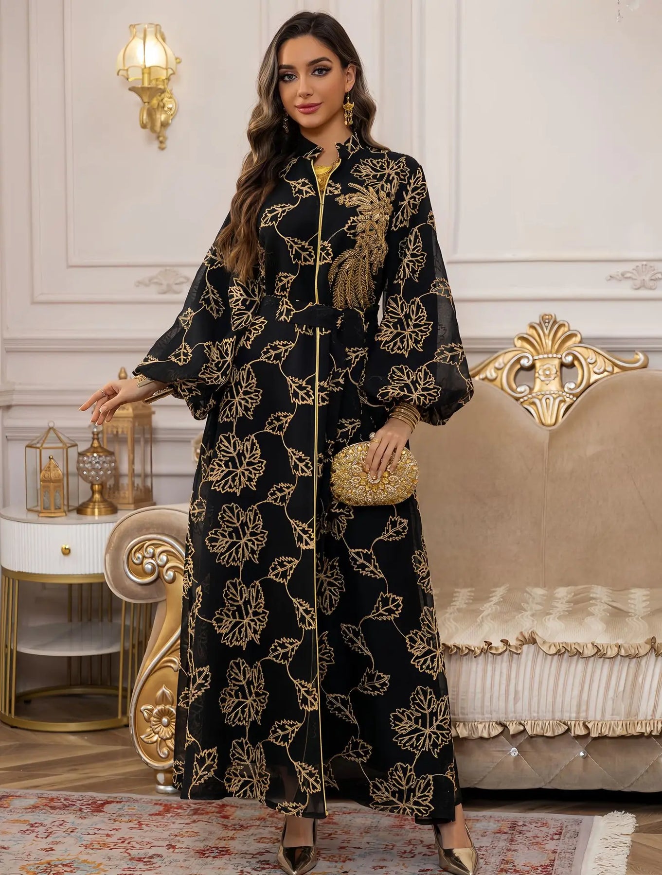 Netting Embroidered Jalabia Dress
