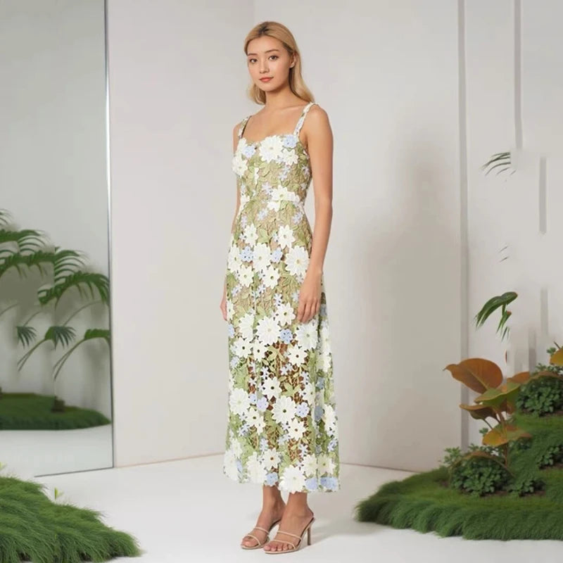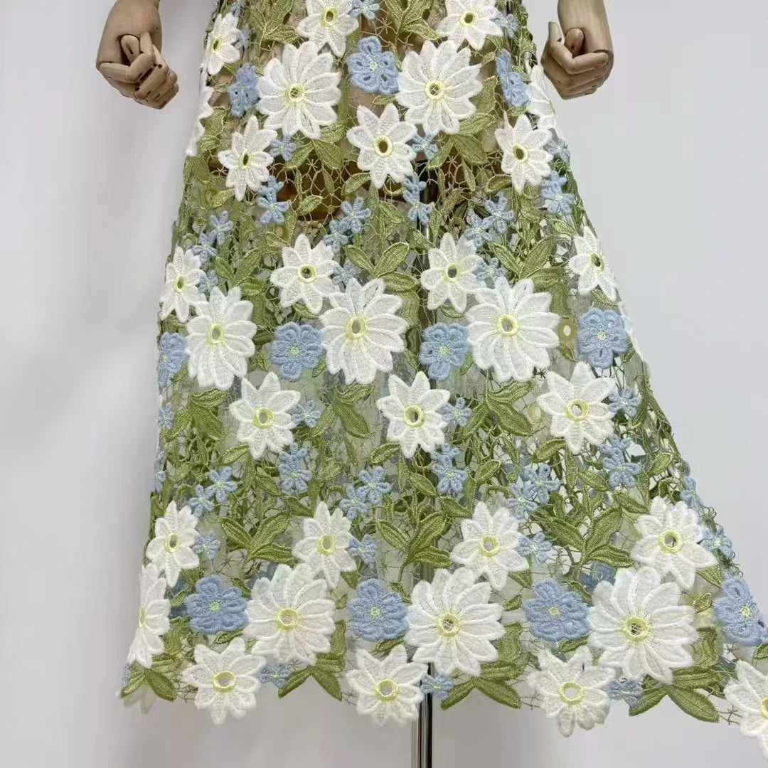 Glamorous 3D Flowers Hollow Out Splicing Dress