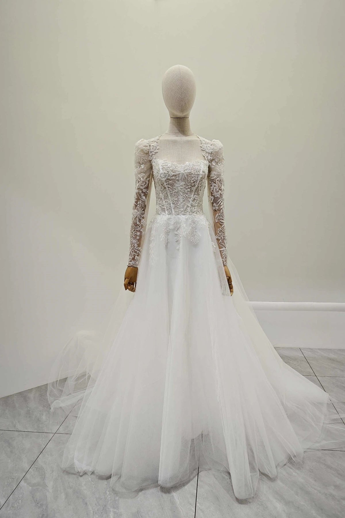 This Sweet A-Line Women's Lace Wedding Gown combines timeless elegance with delicate craftsmanship. Featuring a flattering A-line silhouette, it gently skims the body to enhance your natural shape while providing comfort throughout your special day. The intricate lace detailing adds a romantic and sophisticated touch, perfect for brides seeking classic beauty with refined texture. Ideal for a variety of wedding settings, this gown offers both style and grace to make your celebration unforgettable.