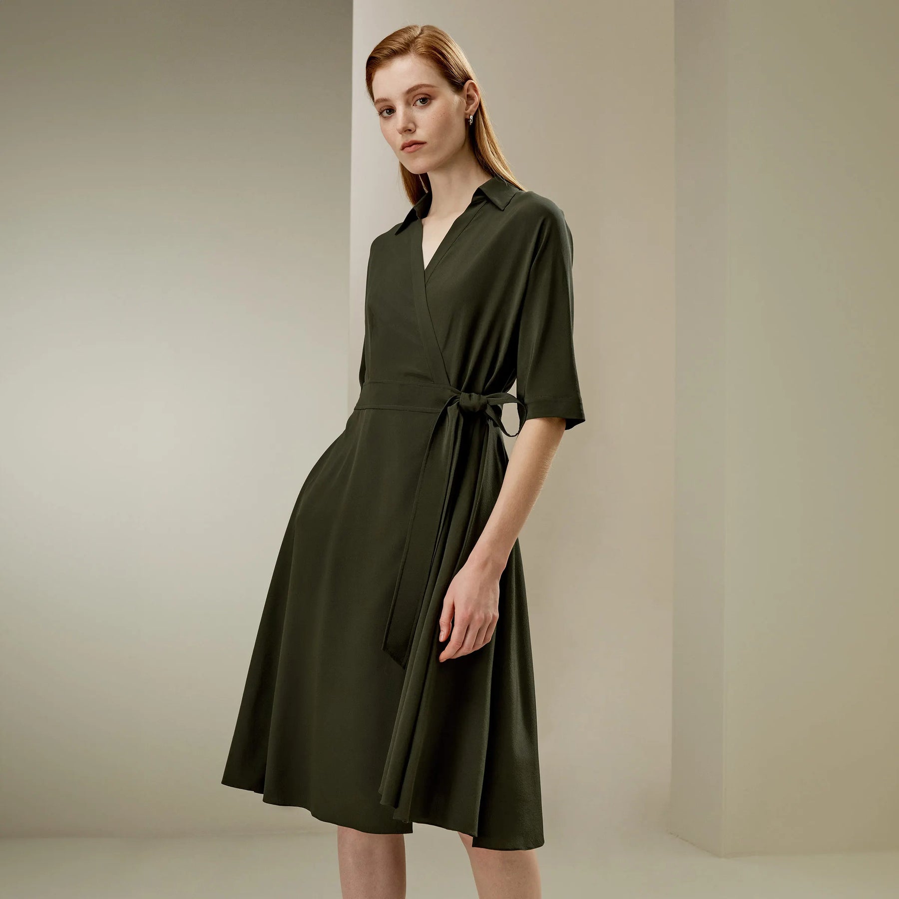Relaxed Half-sleeves Front Tie Silk Wrap Dress