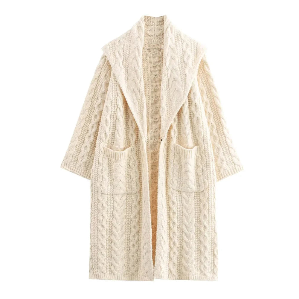 This refined knitted mid-length coat for women combines elegance with comfort. Crafted from high-quality knit fabric, it offers warmth and a flattering silhouette suitable for various occasions. Its mid-length design provides versatile coverage, making it an essential piece for transitional seasons and layering with your wardrobe staples.