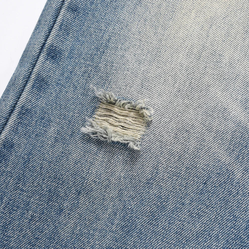 Timeless Straight Fit Hole Printed Jeans Pants