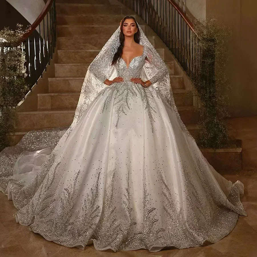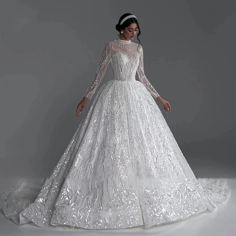 Arabic wedding dresses are known for their modest yet elegant designs. They often feature long sleeves, high necklines, and floor-length skirts, providing coverage while still exuding a sense of grace and beauty.