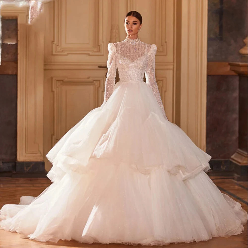 Luxurious Pearls Beaded Arabian Bridal Dress