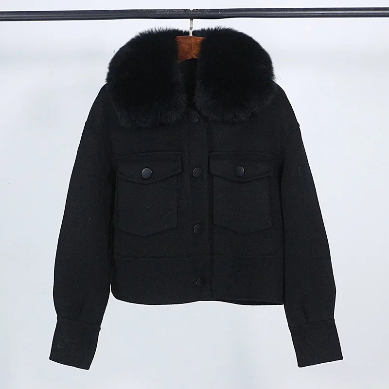 • 10% Cashmere 90% Wool + Fur Material Composition