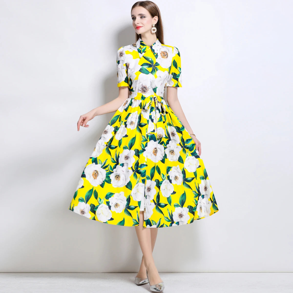 Elevate your wardrobe with this sophisticated Boho Flower Print Midi Dress. Featuring an artful floral pattern on a flowing silhouette, this dress combines bohemian aesthetics with contemporary styling. The midi length offers versatile wearability for both casual outings and semi-formal occasions. Crafted with attention to detail, it provides both comfort and a flattering fit that complements various body types.