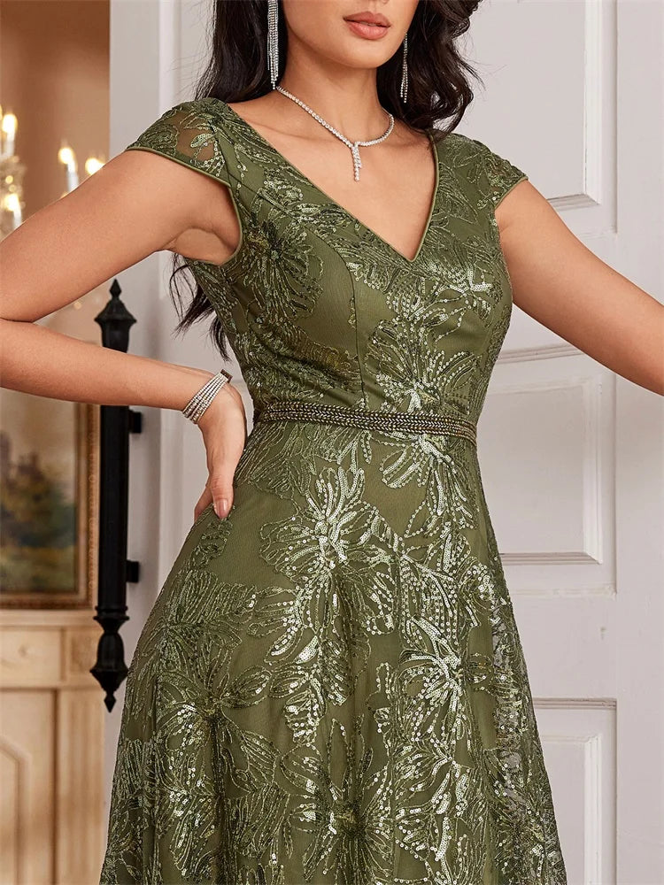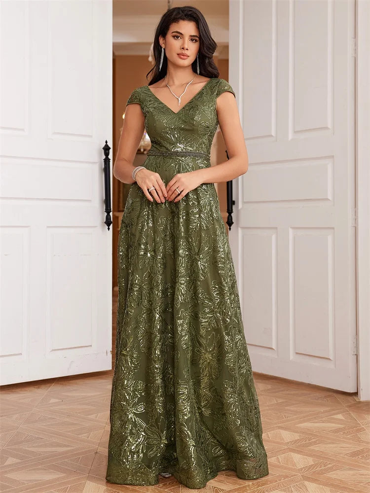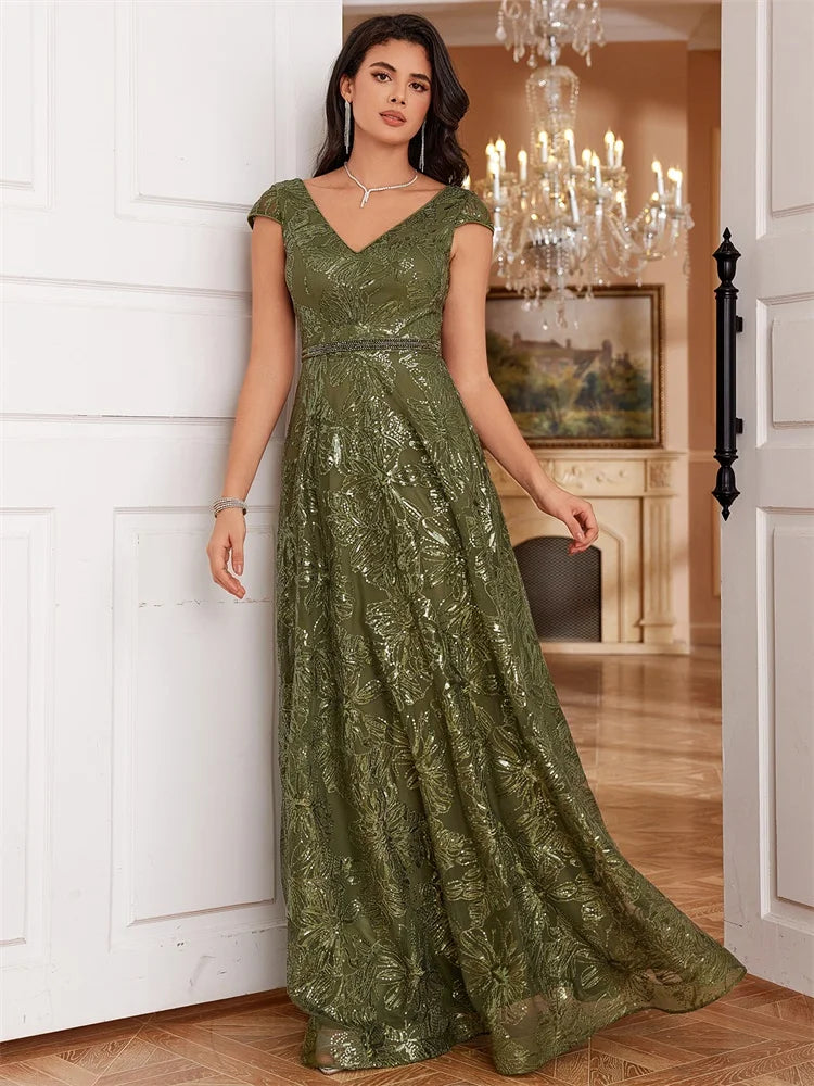 Indulge in the ultimate fashion statement with our Luxury Cocktail V-Neck Sequin Evening Gown. Stunning sequins adorn this elegant v-neck gown, adding a touch of glamour to your evening attire. Perfect for any special occasion, this gown will make you feel confident and sophisticated.