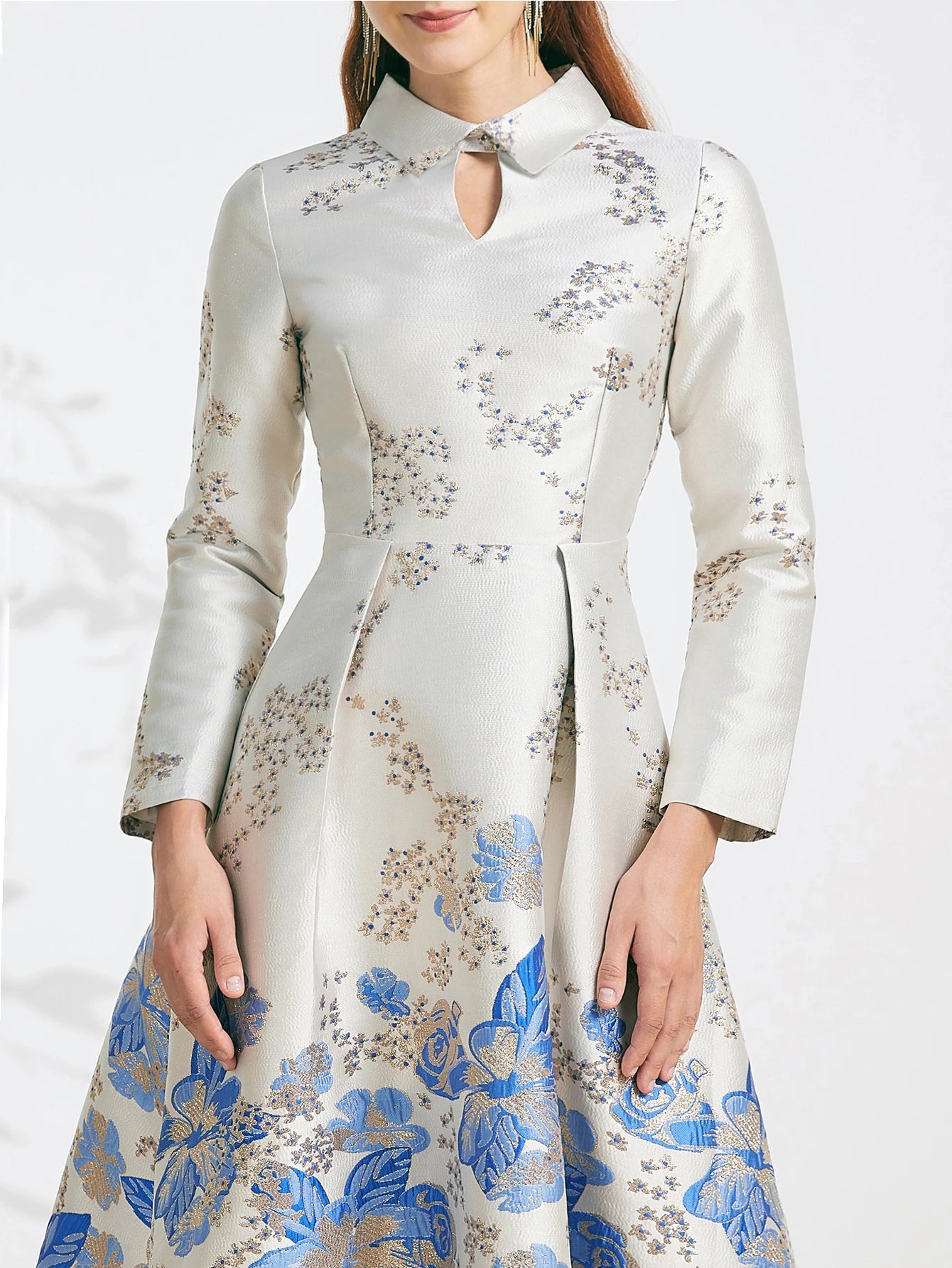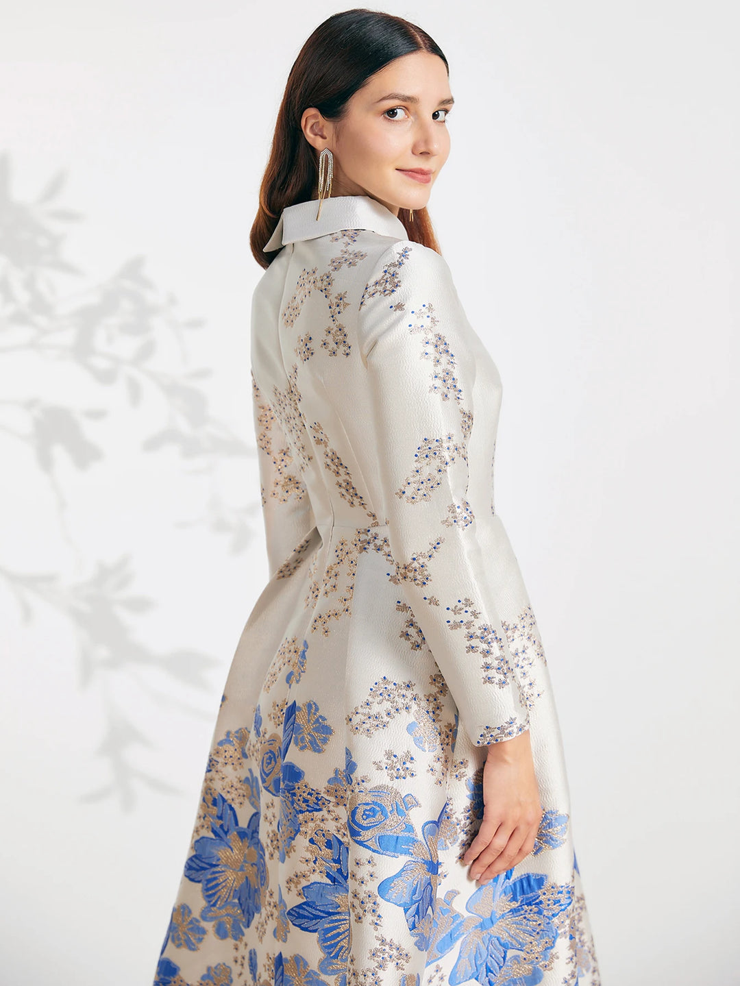 Discover effortless elegance with our Party Floral Jacquard Maxi Dress. Made from high-quality jacquard fabric, it features a beautiful floral design perfect for any party or special occasion. Its maxi length adds a touch of sophistication, while the jacquard fabric provides comfortable and flattering fit.