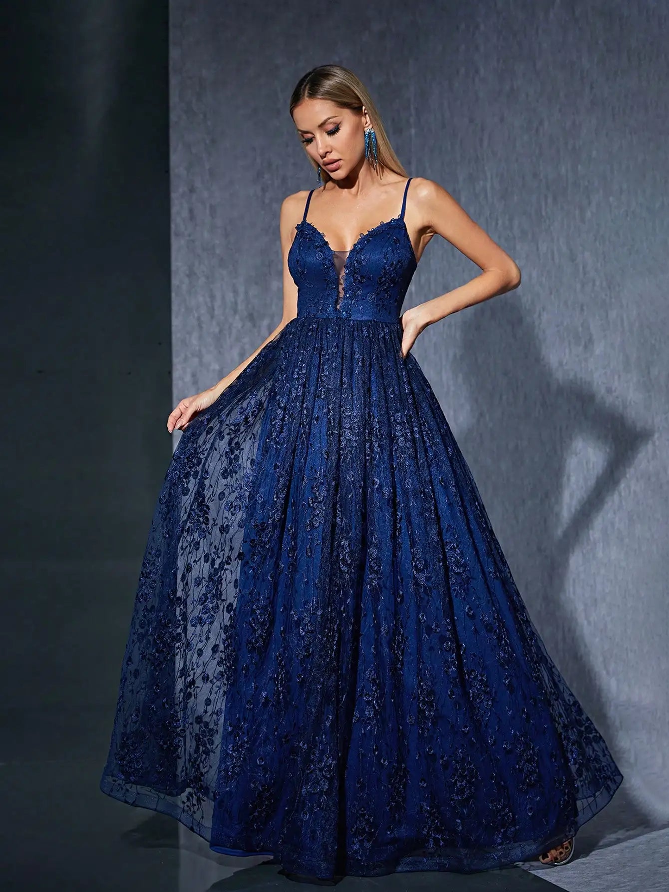 This V-neck lace camisole dress is perfect for a variety of occasions. The lace detail adds a touch of elegance while the v-neck design is flattering to any body type. The high-quality fabric ensures comfort and durability, making it a versatile and stylish addition to any wardrobe.