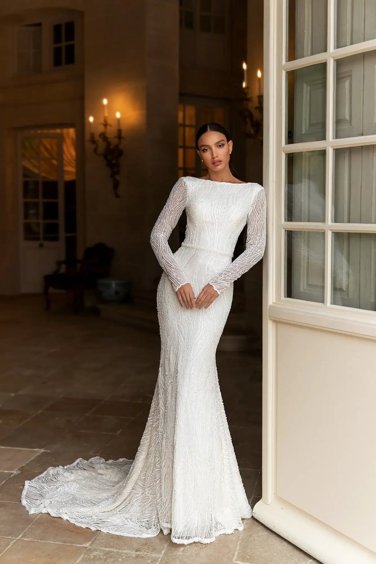 This Refined Appliqued Lace Women's Bridal Gown features intricate lace detailing expertly applied to create a timeless and elegant silhouette. Crafted with precision, it offers a flattering fit that enhances natural grace on your special day. The delicate appliqué work adds depth and texture, ensuring a sophisticated bridal look that combines classic charm with modern refinement. Perfect for brides seeking understated elegance and fine craftsmanship.