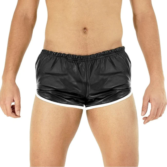 These are the HIGHEST QUALITY full Lambs Leather shorts. With contrasting red leather they'll guarantee to turn head whether you're out clubbing or enjoying the sun.