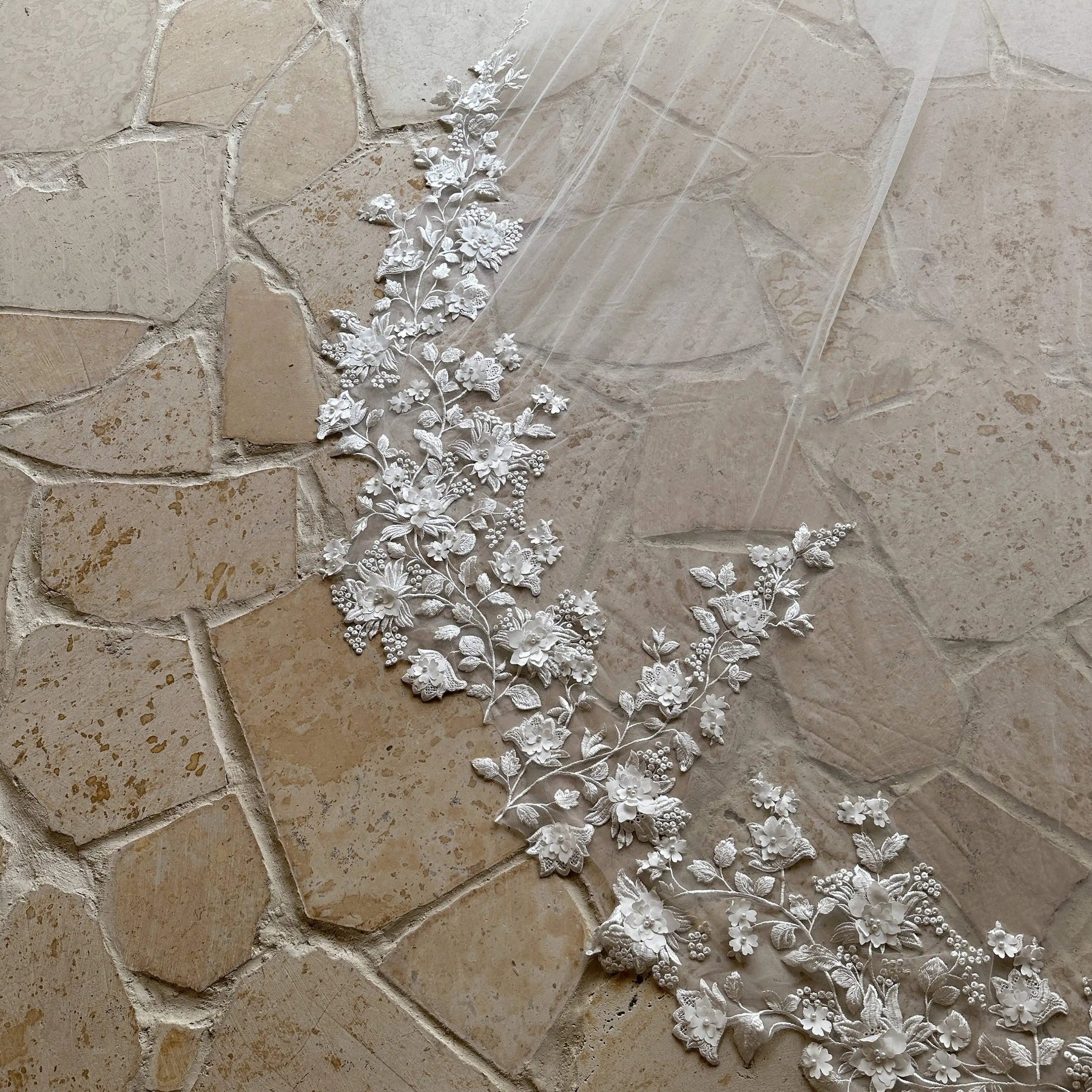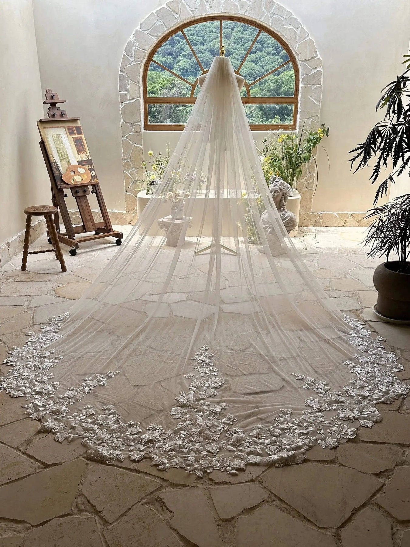 Elevate your bridal ensemble with our Modest Floral Appliqué Veil. Meticulously crafted with delicate floral appliqués, this veil offers the perfect balance of traditional modesty and contemporary elegance. The strategic placement of floral elements frames the face beautifully while providing subtle coverage, making it an ideal choice for brides seeking a timeless yet distinctive accessory for their special day.