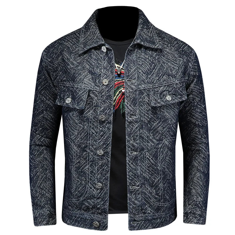 This Casual Retro Men's Jacquard Denim Jacket combines timeless denim durability with intricate jacquard patterns for a distinctive vintage look. Crafted for comfort and style, it offers a versatile layering option that enhances any casual outfit. Its expert design ensures both lasting wear and a unique aesthetic, perfect for those seeking a blend of classic and contemporary fashion.