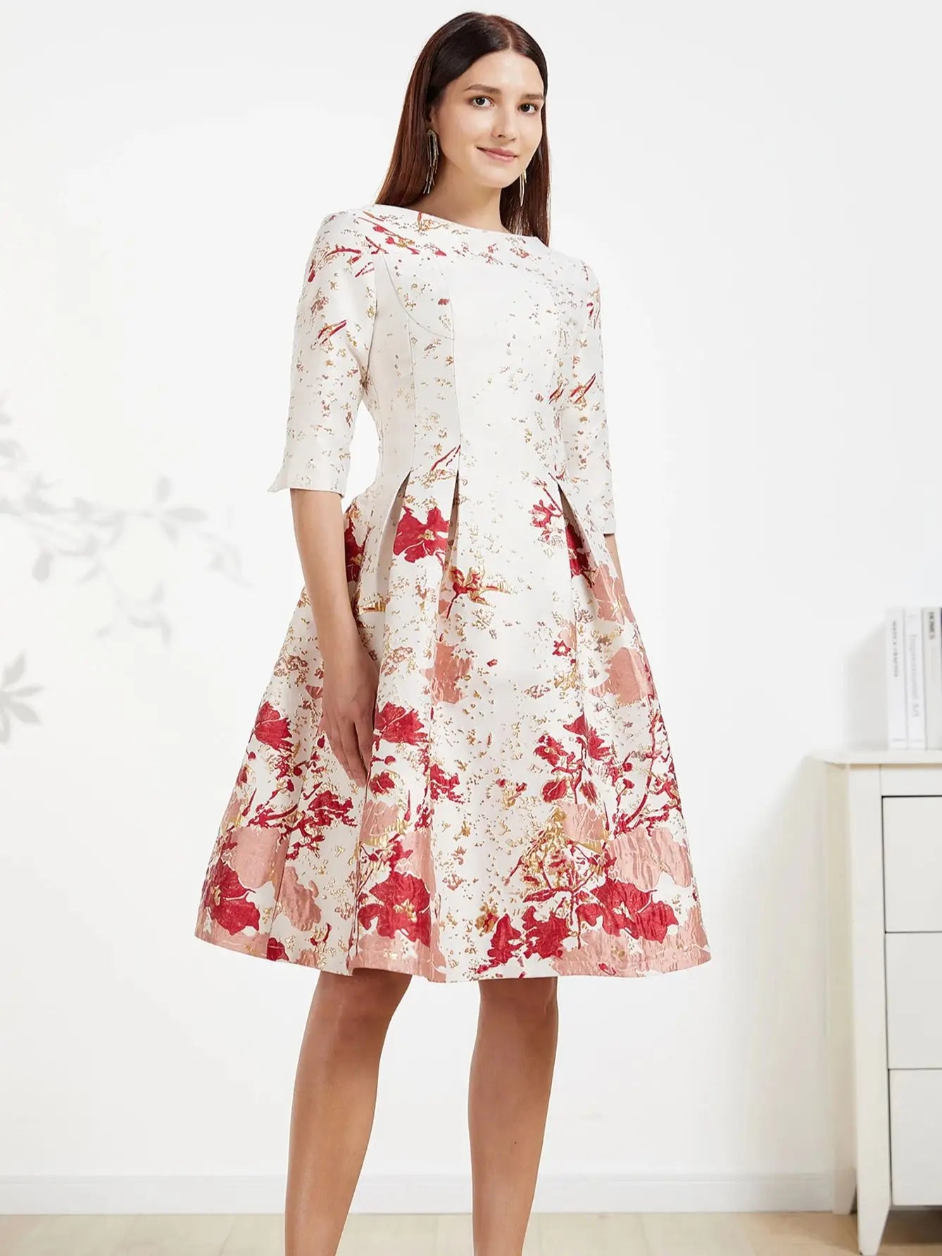 Dress to impress with our Refined Floral Women's Jacquard Dress. This elegant dress is crafted with a stunning floral jacquard design, perfect for any occasion. Its refined look exudes sophistication and style. Guaranteed to make you stand out and feel confident.