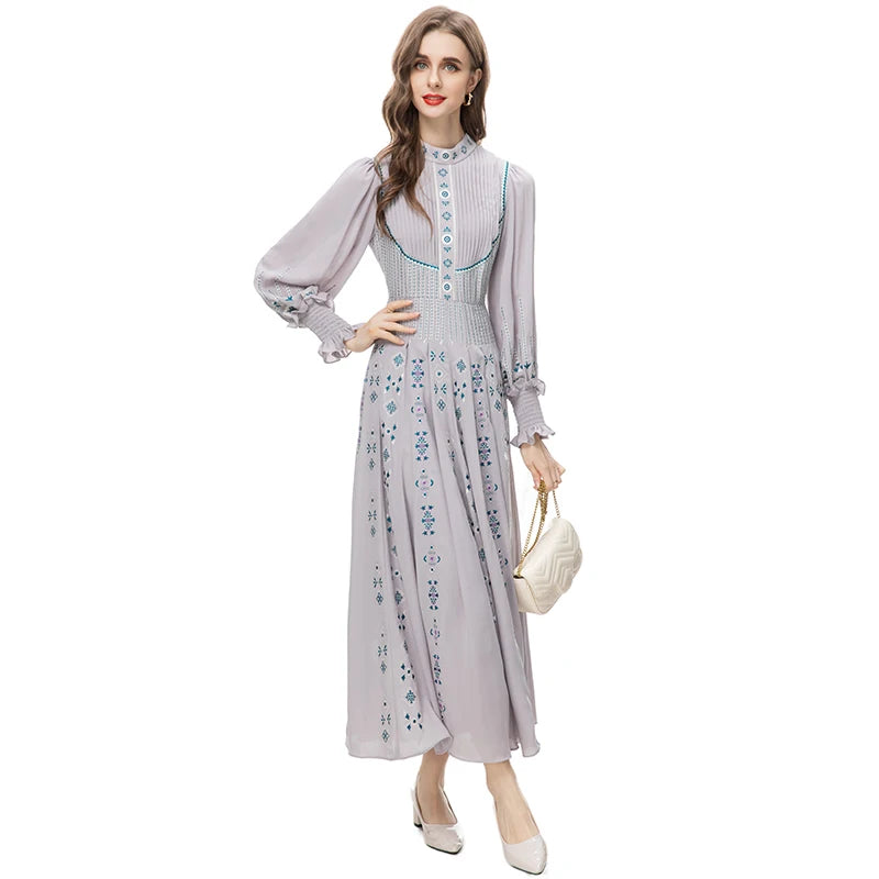 Elevate your style with our stunning Embroidered Lantern Sleeve Women's Dress. The delicate embroidery adds an elegant touch to this dress, while the lantern sleeves provide a unique and fashionable silhouette. Made with high-quality materials, this dress guarantees comfort and sophistication for any occasion.
