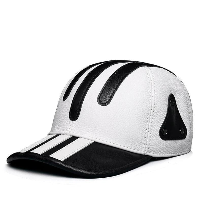 Quality Leather Men's Striped Baseball Cap Crafted from premium leather, this baseball cap combines classic style with contemporary design. The distinctive striped pattern adds visual interest while maintaining versatility for casual and smart-casual settings. The structured crown provides excellent shape retention, whilst the curved bill offers reliable sun protection. Adjustable sizing ensures a comfortable fit for most wearers. An ideal choice for those seeking a durable, refined headwear option that elevates everyday wear.