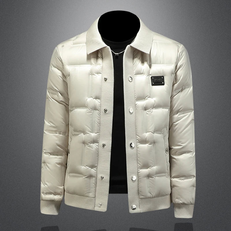 Engineered for superior warmth without bulk, this men's puffer jacket features premium duck down insulation that traps heat efficiently while remaining lightweight and packable. The water-resistant outer shell protects against light moisture and wind, making it ideal for layering during transitional seasons or as a standalone piece in milder winter conditions. Designed with a tailored fit that flatters the silhouette, it combines functionality with contemporary style. Multiple pockets provide practical storage, while the durable construction ensures lasting performance season after season.