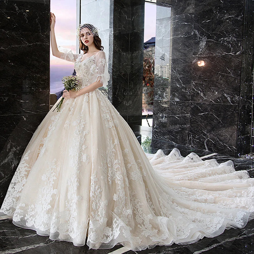 Gorgeous Lace Half Sleeve Bridal Ball Gown