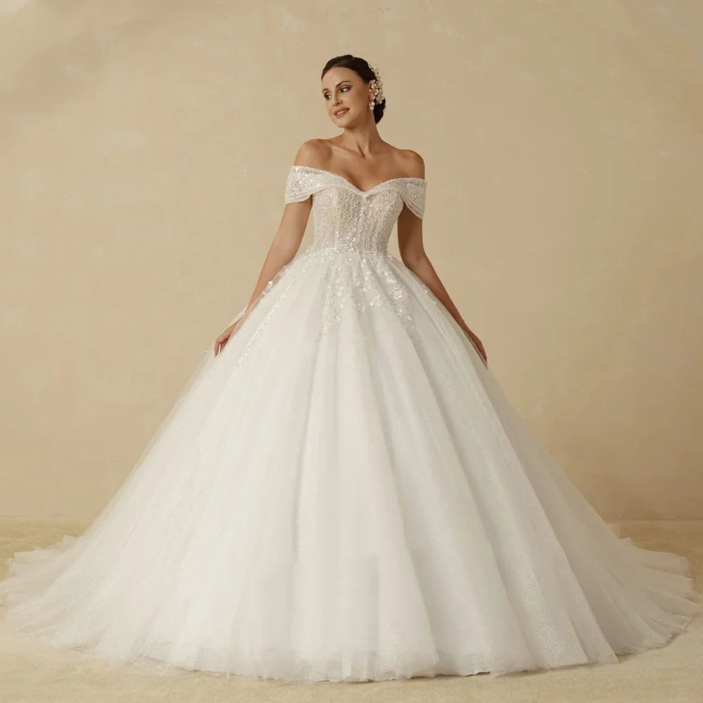 This elegant women's ball gown features a shimmering glitter finish that catches the light beautifully, making it perfect for formal events and special occasions. Designed to combine style and sophistication, the gown offers a flattering silhouette that enhances your presence. Its high-quality fabric ensures comfort while maintaining a polished, radiant look throughout the evening. Ideal for those seeking a standout piece that exudes confidence and glamour.