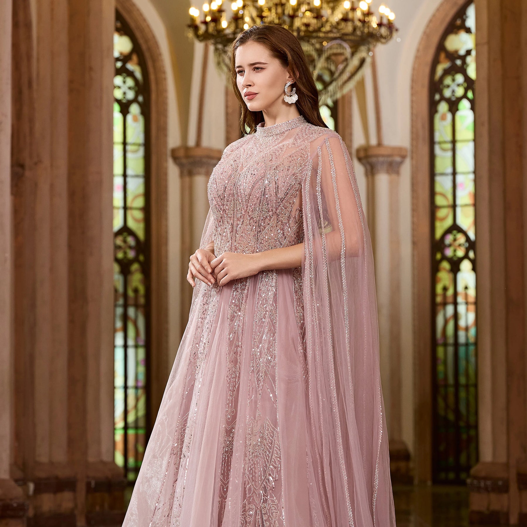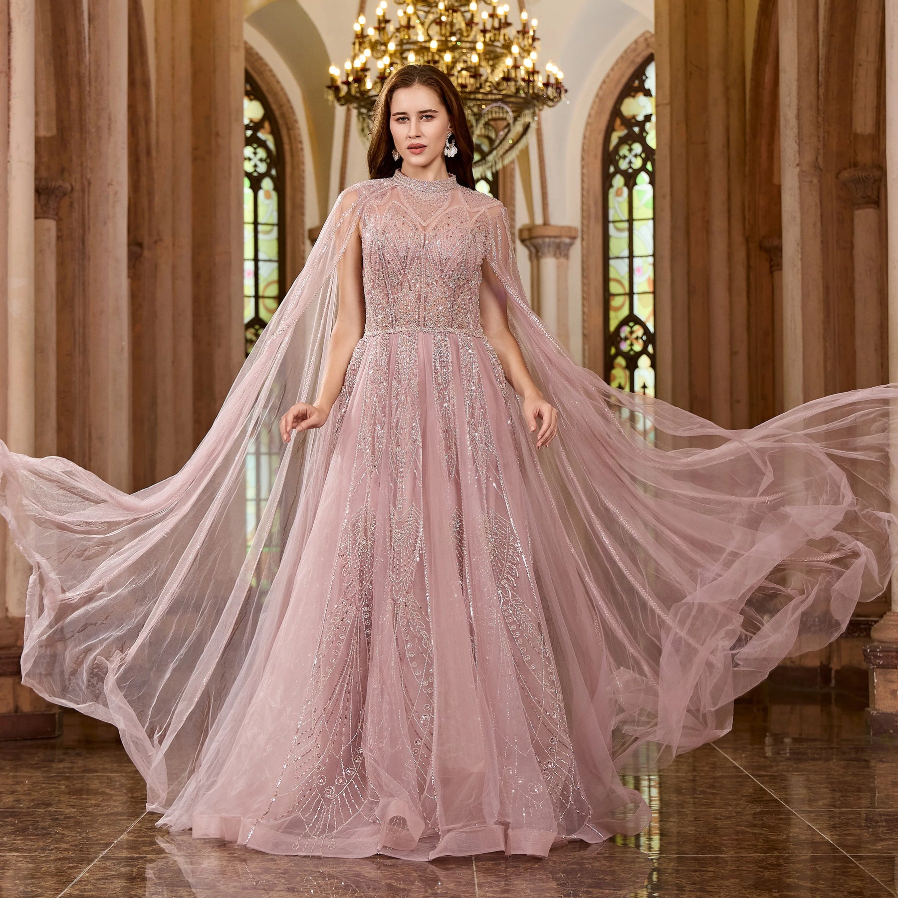 Elevate your evening elegance with this Luxury Cape Sleeves Women's Evening Gown. Designed to combine sophistication and comfort, the gown features flowing cape sleeves that add a dramatic yet refined silhouette. Crafted from premium materials, it ensures a flattering fit and graceful movement, making it ideal for formal occasions where style and poise are paramount. This gown is a timeless choice for those seeking understated luxury and expert tailoring.