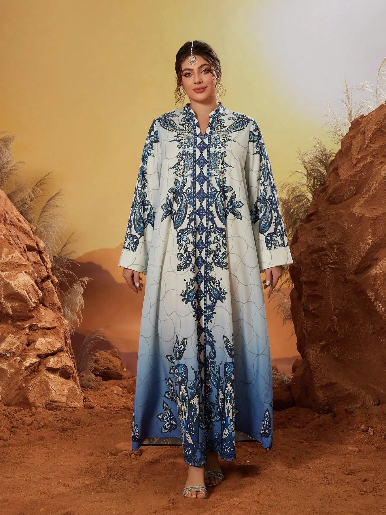 Decorative Stand-up Collar Abaya Dress