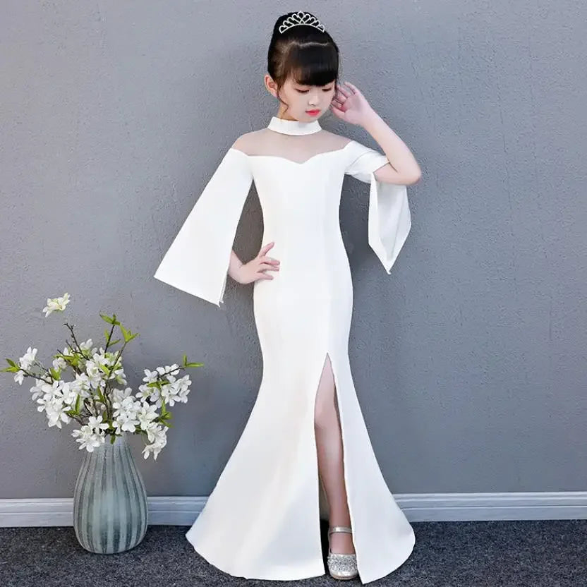 This elegant girl's party gown features sophisticated mesh stitching details that elevate its refined aesthetic. The sleek silhouette flatters with a modern cut, while the intricate mesh panels add visual interest and texture. Crafted for special occasions, this dress combines contemporary design with timeless appeal, making it an ideal choice for celebrations, formal events, or memorable gatherings. The quality construction ensures durability through wear, while the polished finish maintains its pristine appearance throughout the evening.