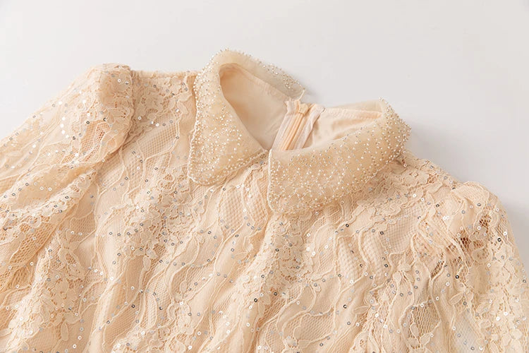 Sparkle and shine in this stunning sequin dress with fashionable lantern sleeves. Perfect for any special occasion, this dress will make you stand out in the crowd. Feel confident and stylish in this must-have, eye-catching piece.