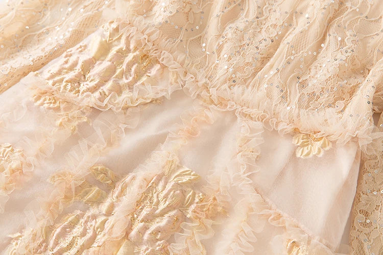 ·       Hair and Makeup: Bold makeup (like a smoky eye or red lip) and an updo to highlight the dress's intricate details.