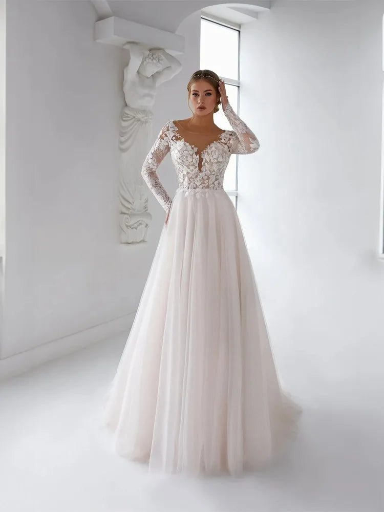 Be a vision of elegance and grace on your special day with our Sheer O-Neck Backless Wedding Dress. Featuring a sheer neckline and backless design, this dress exudes sophistication and will leave you feeling confident and beautiful as you walk down the aisle. Perfect for the modern bride, this dress will make your wedding day truly unforgettable.