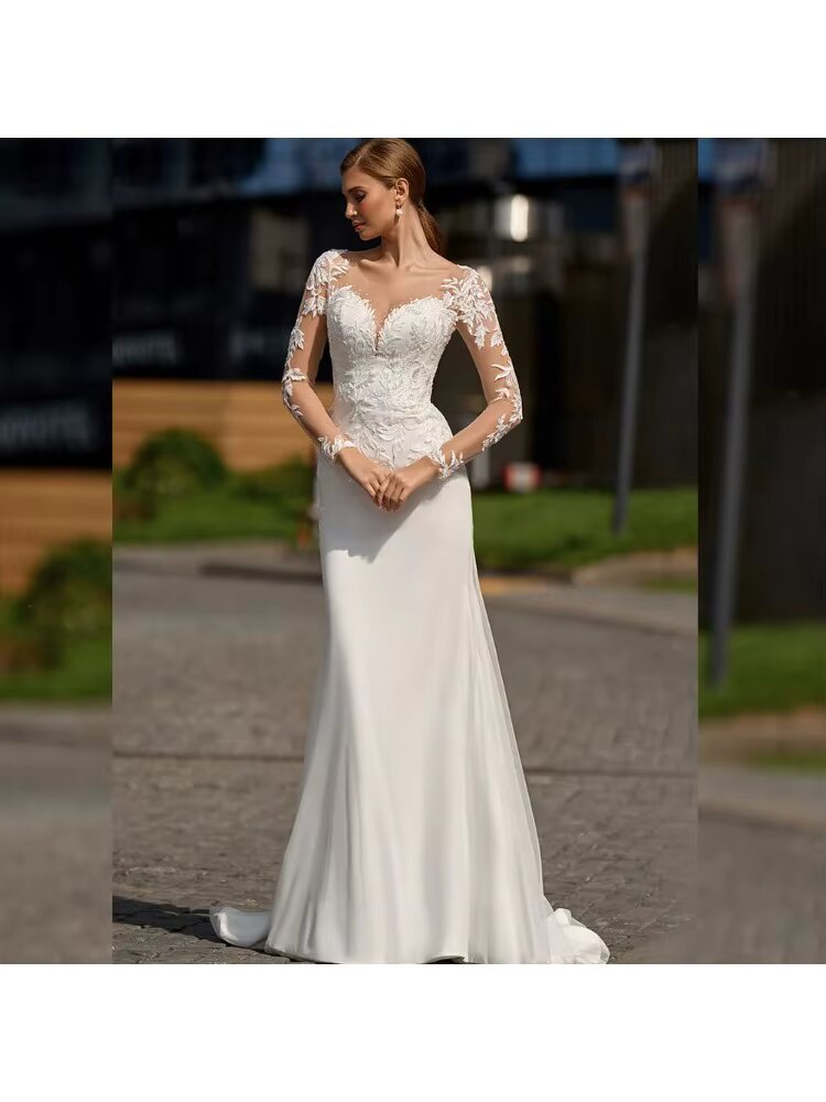 Sheath dresses are sleek and modern, perfect for brides who want a more understated look. This style is form-fitting and skims the body from head to toe, creating a streamlined silhouette. Sheath dresses are ideal for beach or destination weddings.
