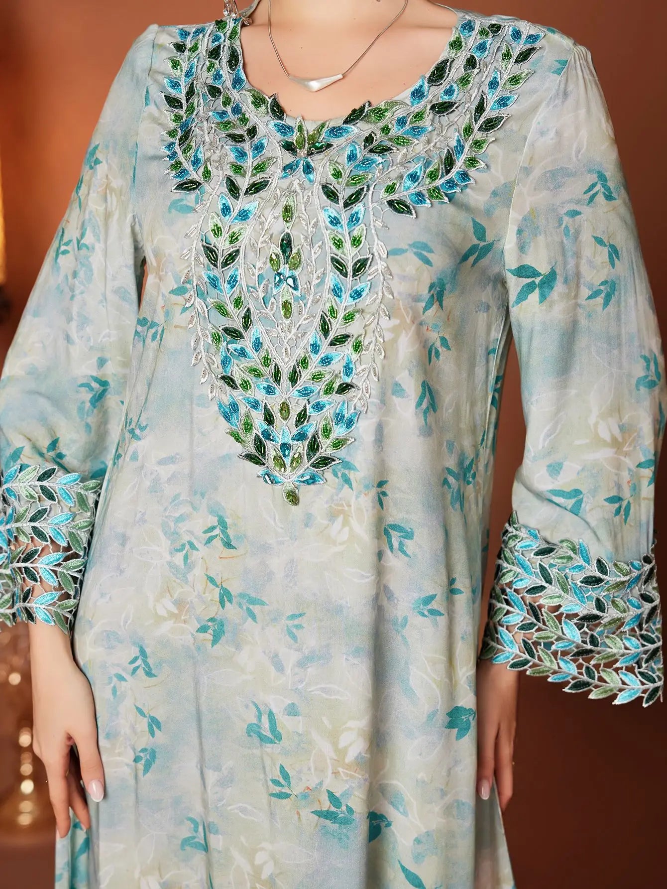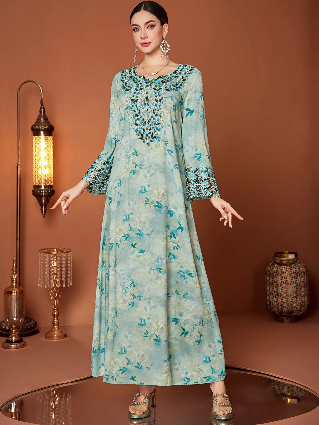 Classic Floral Print Arab Abaya Dress