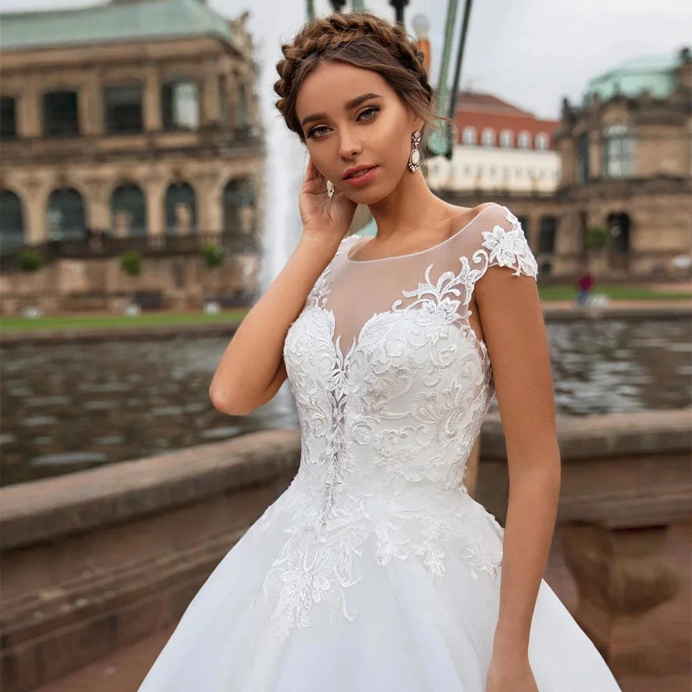 Crafted for the discerning bride, this exquisite lace gown features delicate appliqués that create an ethereal silhouette. The intricate lacework is meticulously positioned to enhance your natural contours, while the refined construction ensures comfort throughout your celebration. Perfect for those seeking timeless elegance with sophisticated detailing, this gown combines traditional bridal craftsmanship with contemporary design sensibilities. An investment piece that captures the essence of refined femininity.