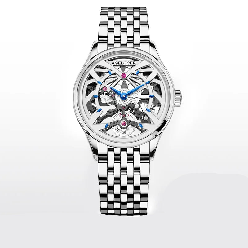 Discover the artistry of precision timekeeping with this luxury mechanical watch, featuring an exquisite hollow design that showcases the intricate movement within. Crafted for the discerning woman who appreciates fine engineering, the transparent casing reveals the mesmerizing dance of gears and springs. This timepiece combines sophisticated aesthetics with reliable mechanical accuracy, offering a statement accessory that transcends fleeting trends. Perfect for those who value craftsmanship and elegance in equal measure.