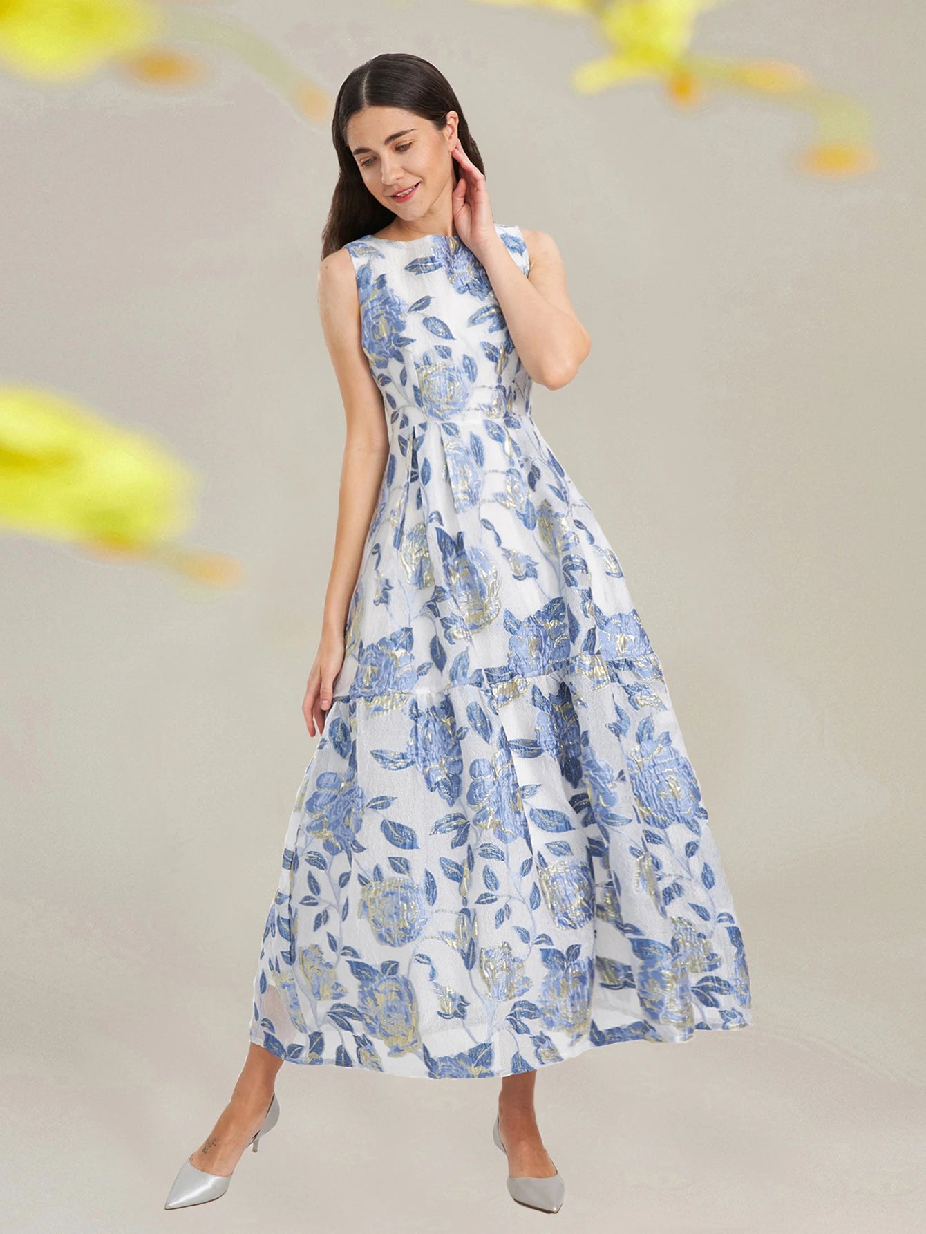 Experience elegance and sophistication with our Jacquard Flower Ball Gown Dress. Made with luxurious jacquard fabric and adorned with delicate flower details, this dress is perfect for any formal occasion. Make a statement with its flattering silhouette and stand out in a sea of ordinary.
