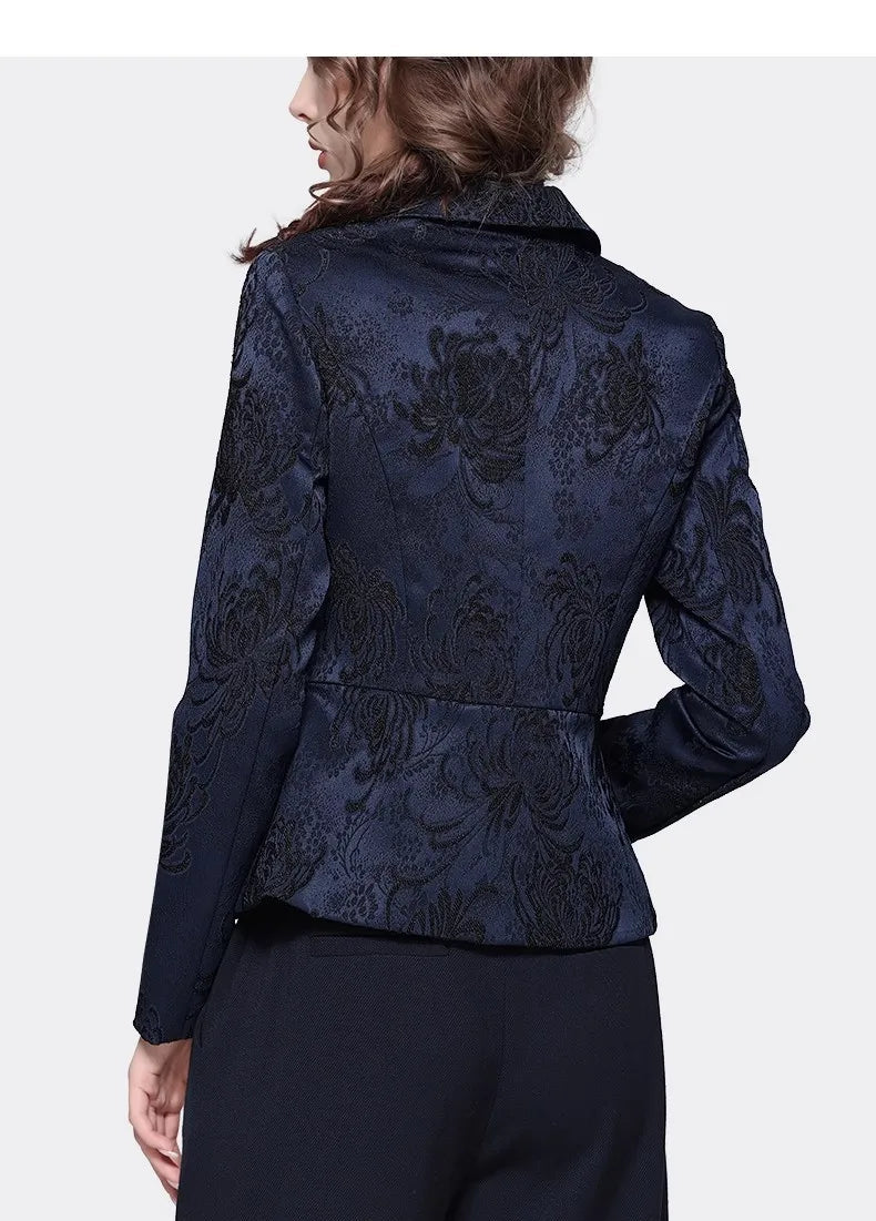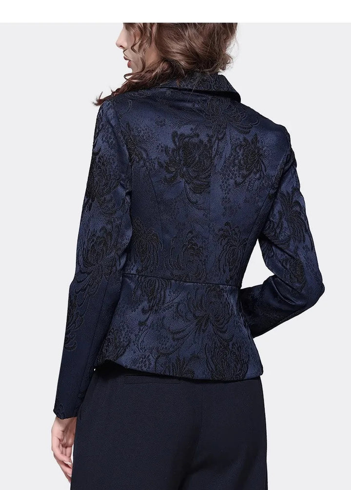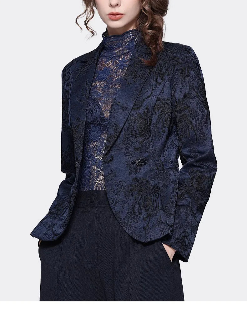 This classic slim-fit women's jacquard blazer combines style and sophistication. Its tailored design enhances your figure while the jacquard fabric adds a touch of elegance. Made with high-quality materials, this blazer is perfect for any formal or professional setting. Elevate your wardrobe with this timeless piece.