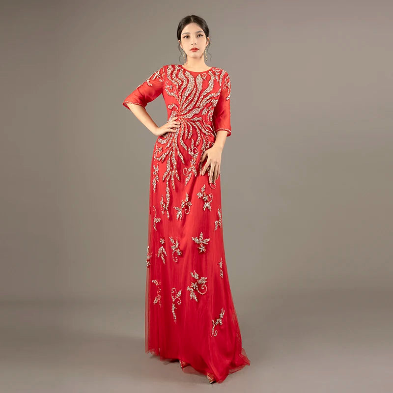Indulge in luxury with our Elegant Beaded Formal Embroidery Women's Gown. Adorned with delicate beadwork and stunning embroidery, this gown exudes sophistication and elegance. Perfect for formal events, you'll feel like a true queen in this gown. Elevate your style and make a statement with our stunning gown.