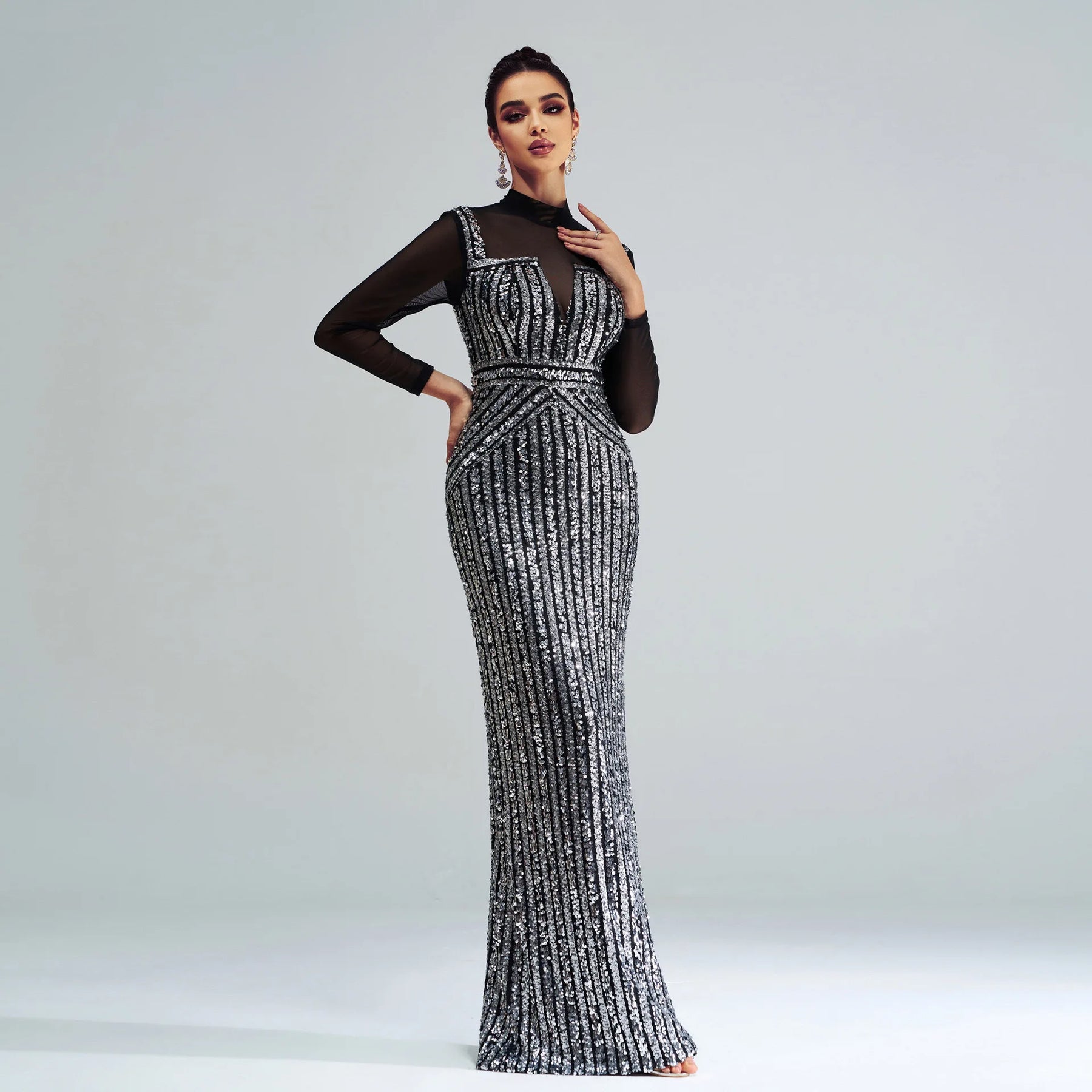 This stunning sequined dress adds a touch of glamour to any occasion. Its fishtail design elongates your silhouette, while the intricate sequin detailing catches the light for a truly eye-catching look. Made with high-quality materials, this dress ensures both style and comfort. Perfect for any formal event.
