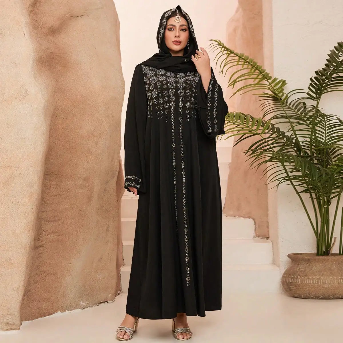 Elevate your evening attire with the Graceful Abaya Robe, designed to combine modesty with sophisticated elegance. This women's evening dress features flowing lines and a refined silhouette that ensures comfort while making a graceful statement. Ideal for formal occasions, its high-quality fabric offers a flattering drape, enhancing poise and confidence throughout the event. Perfectly balancing tradition and contemporary style, this abaya is a timeless addition to any wardrobe.