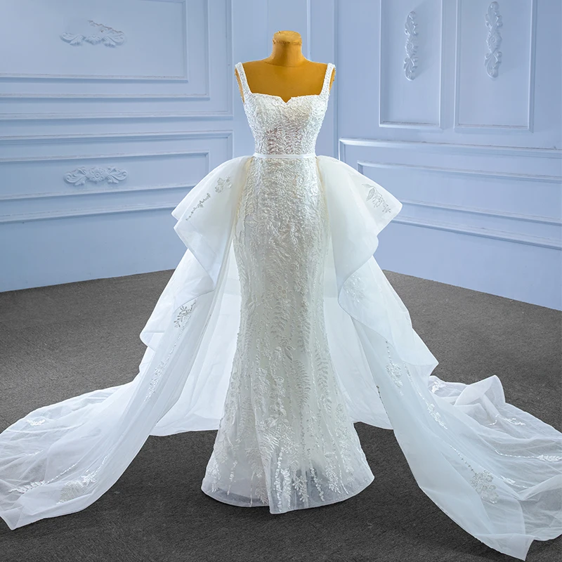 Robe de mariée sirène en organza, col carré, appliques, collection janvier 2024, RSM222200