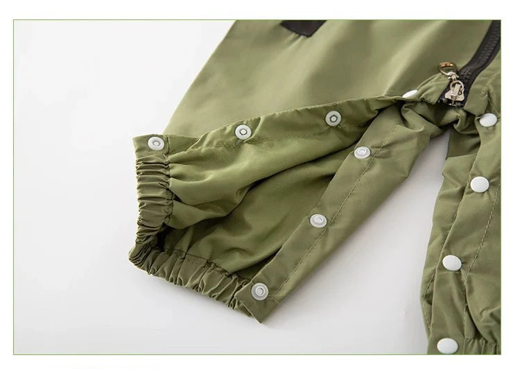 This hooded boys' jumpsuit romper combines practicality with modern style, making it an essential piece for active young boys. Crafted with attention to detail, it offers warmth and comfort while allowing freedom of movement. The attached hood provides extra protection against the elements, while the design ensures easy dressing and durability. Ideal for everyday wear or casual outings, this jumpsuit keeps boys comfortable and looking sharp throughout the day.