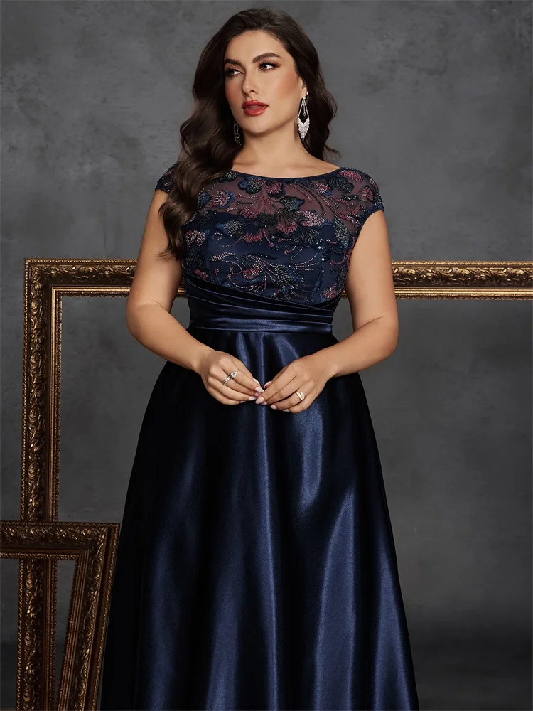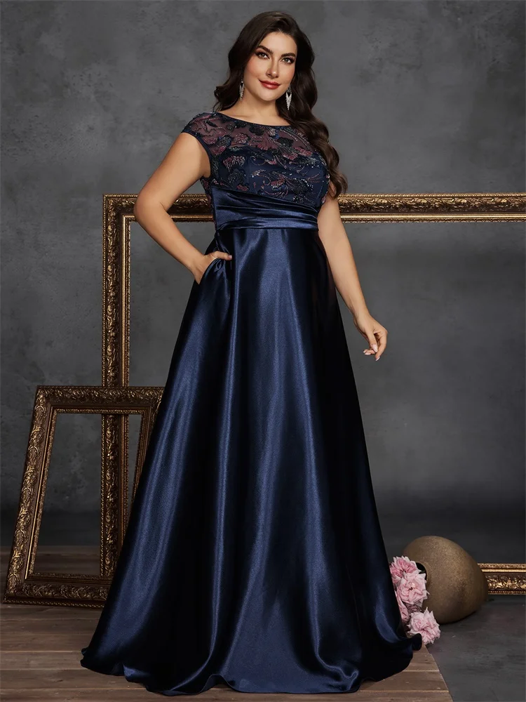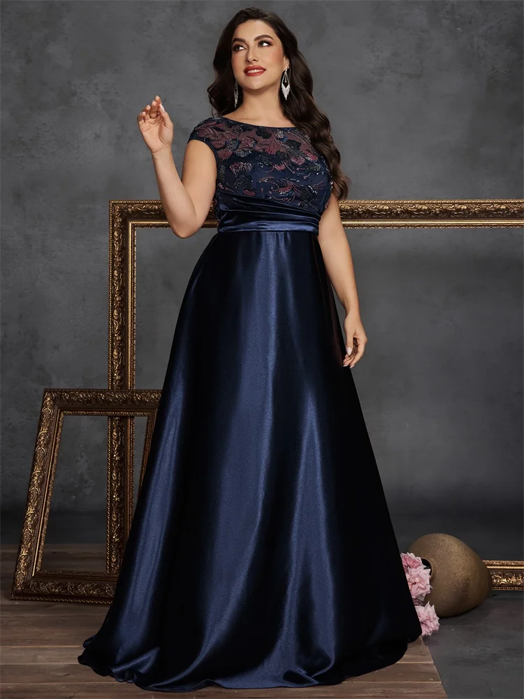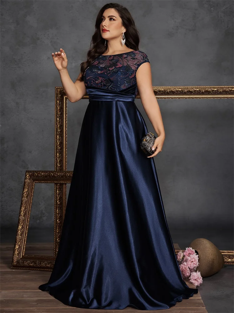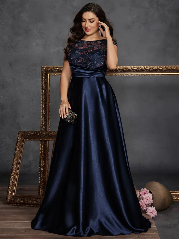 Lucyinlove Robe de soirée élégante à paillettes vertes, grande taille, col rond, luxueuse, sans manches, en satin, pour mariage, bal, cocktail