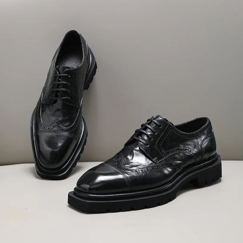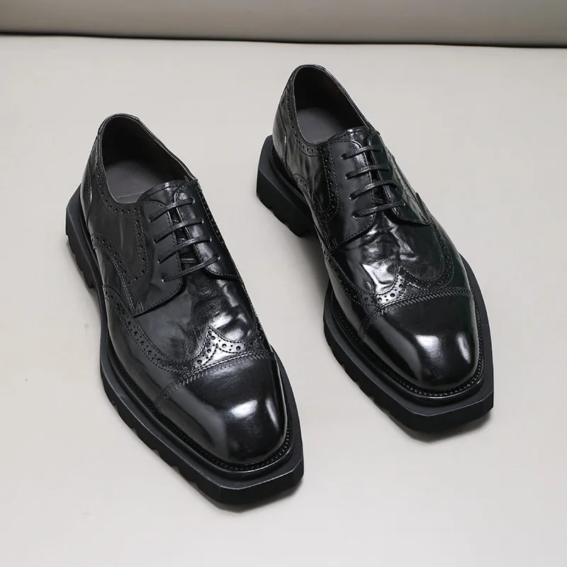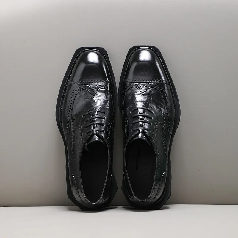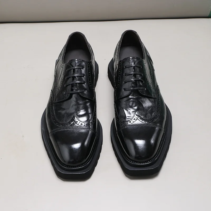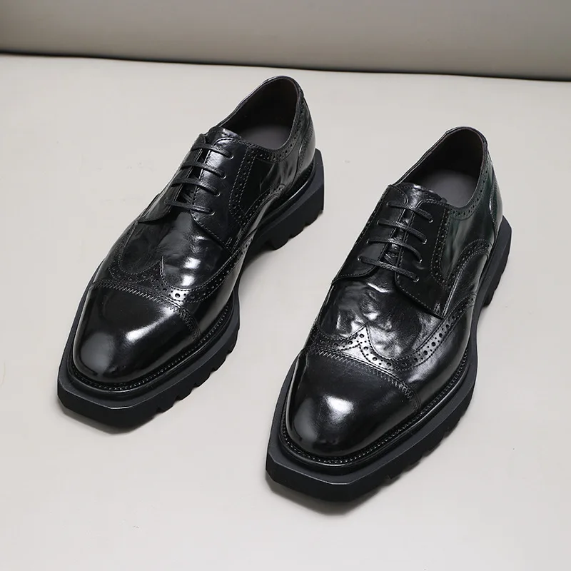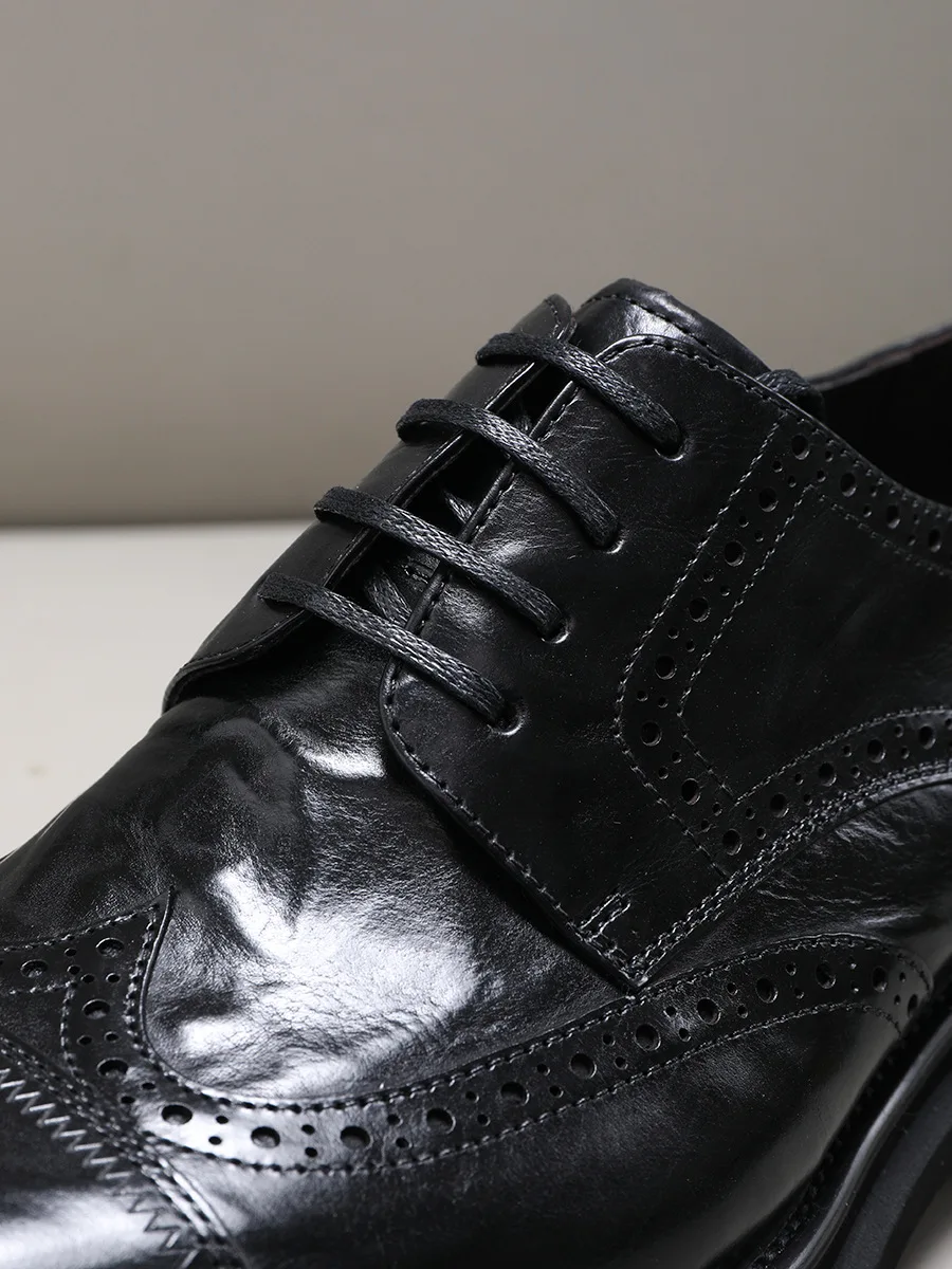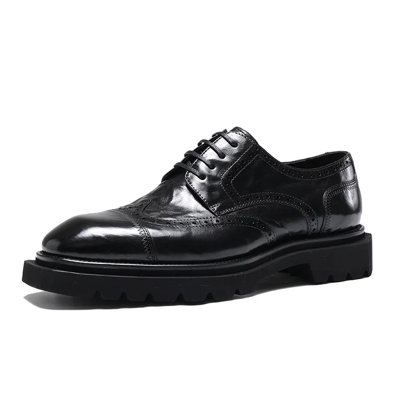 Mocassins en cuir véritable pour homme avec perforations Brogue et semelles épaisses, pour une tenue décontractée et professionnelle.