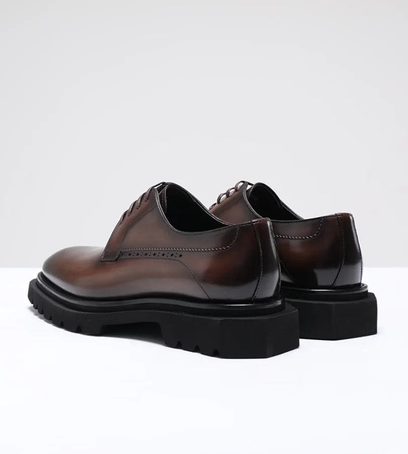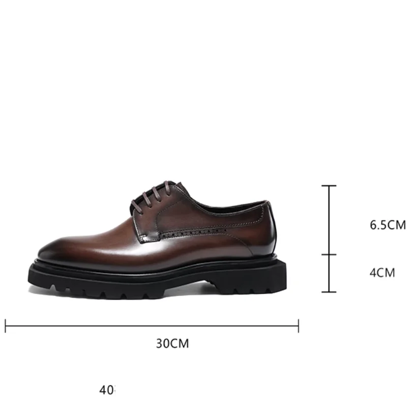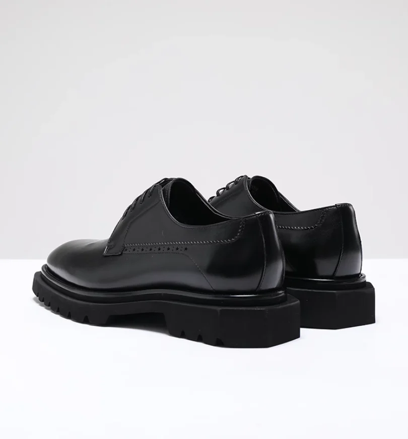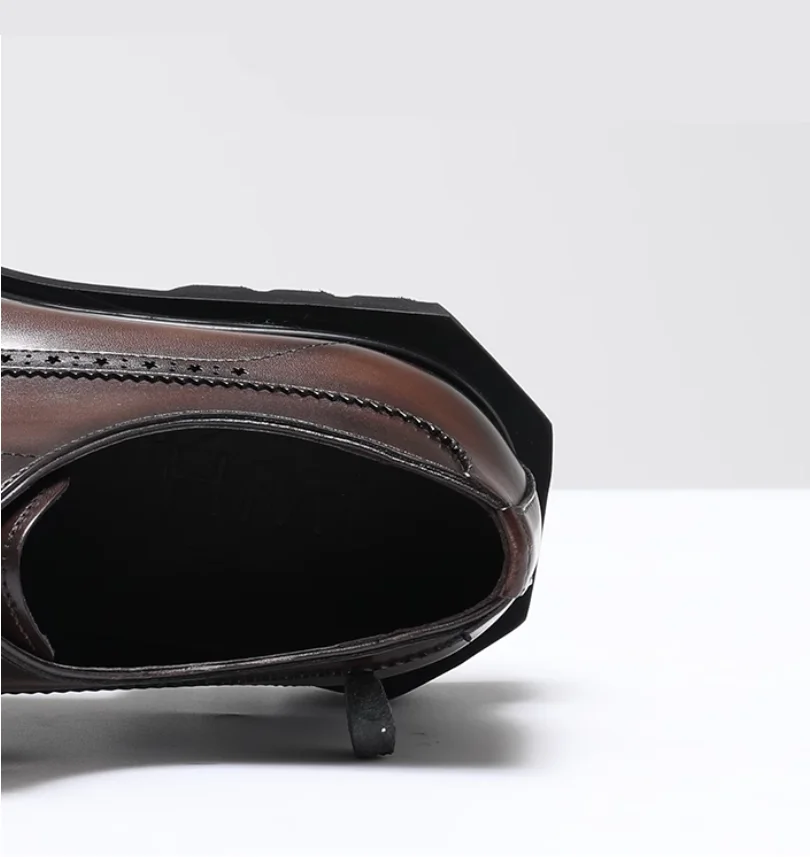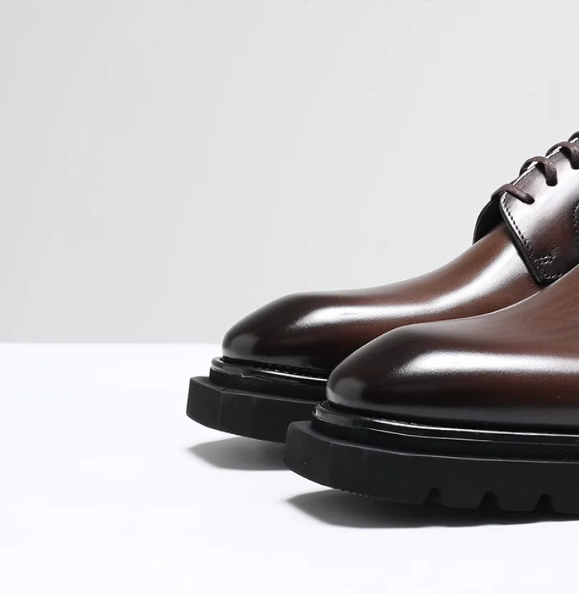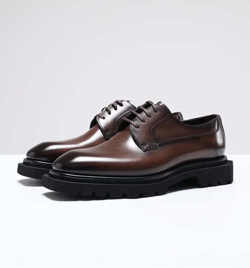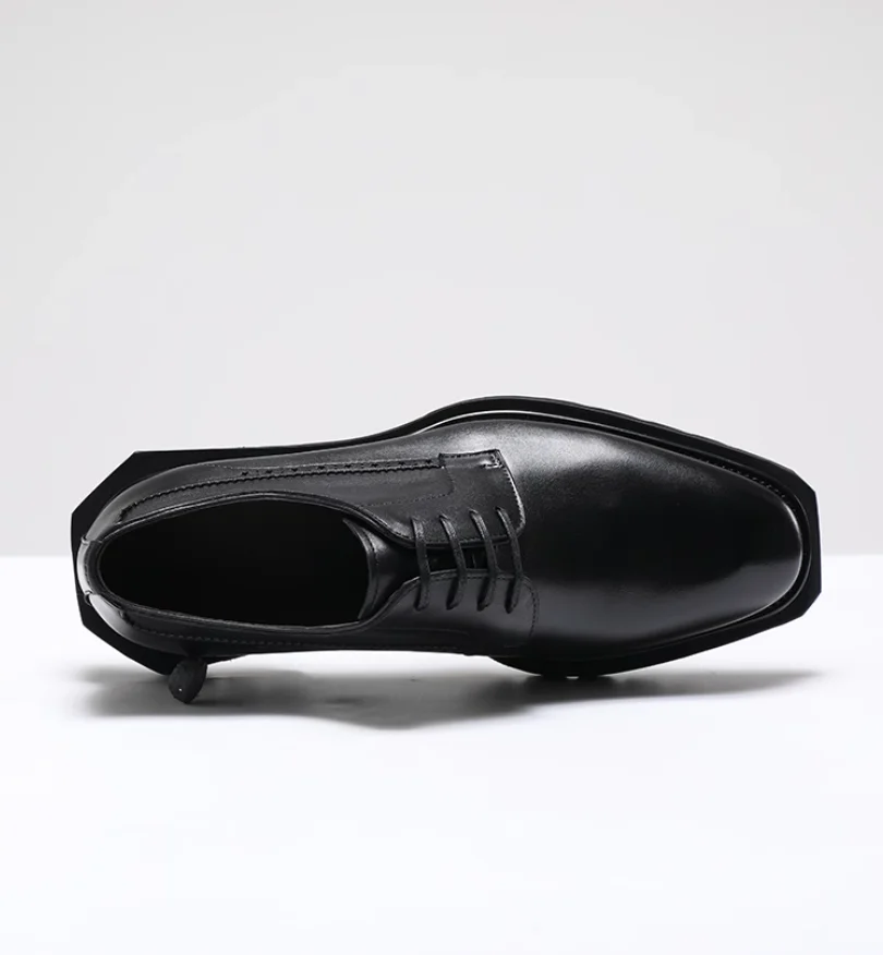 Chaussures en cuir pour hommes à tête carrée haut de gamme faites à la main en cuir véritable noir version coréenne semelle épaisse version européenne De